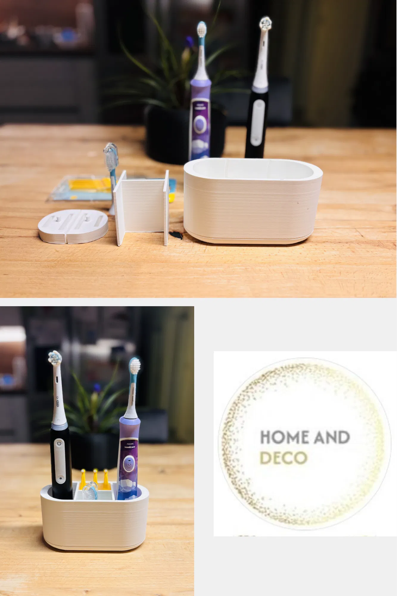 Sản phẩm này được thiết kế với cấu trúc tối giản nhưng cực kỳ chắc chắn, cho phép bạn cất giữ các dòng bàn chải điện phổ biến hiện nay như Oral-B hay Philips Sonicare một cách ổn định. Nhờ thiết kế các ngăn tách biệt, nước đọng từ đầu bàn chải sẽ không bị chảy sang các ngăn khác, giúp giữ cho toàn bộ hệ thống luôn khô ráo và tránh được tình trạng nấm mốc. Đây là giải pháp in 3D tuyệt vời cho những ai yêu thích sự ngăn nắp và muốn tối ưu hóa không gian phòng tắm theo phong cách tối giản.