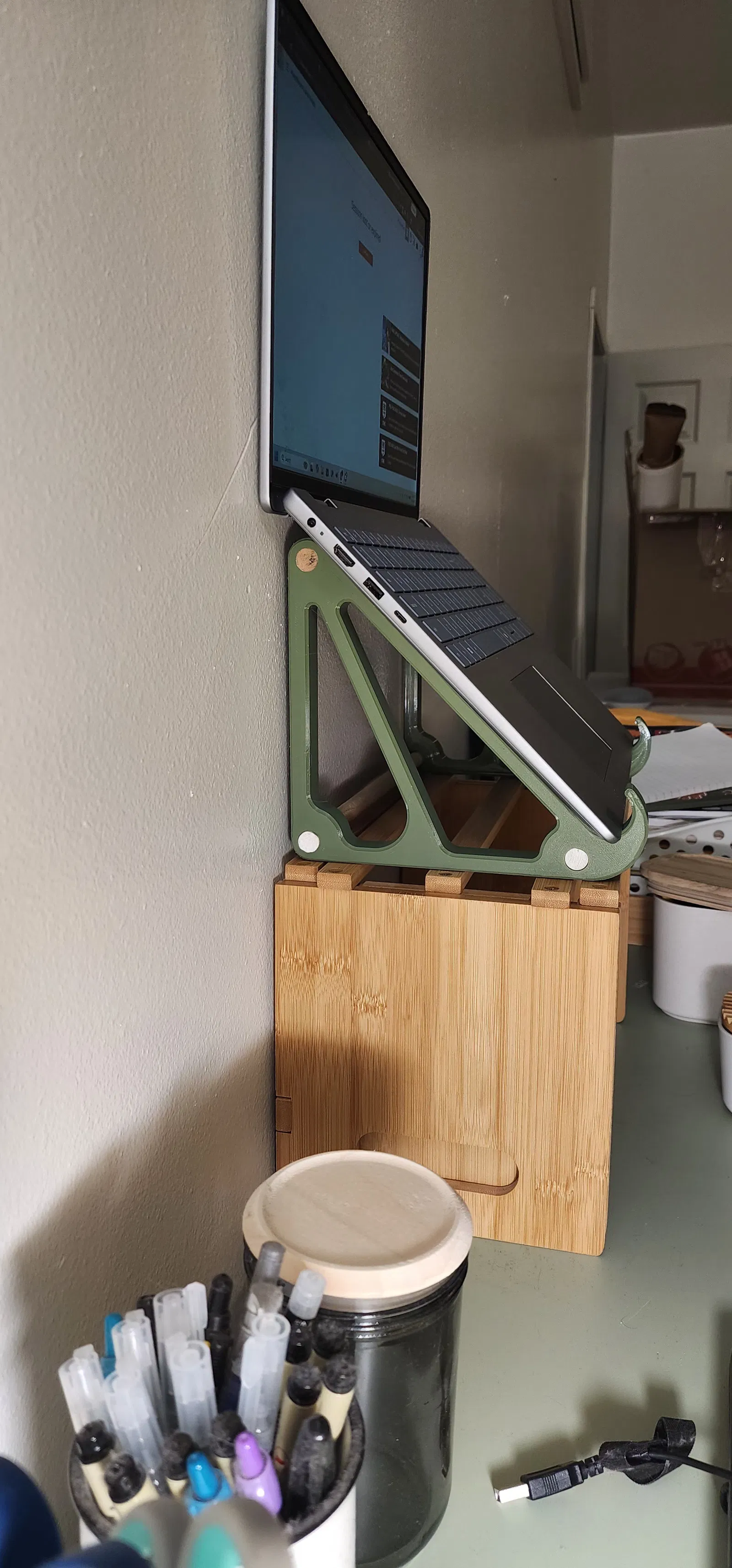 Mình đã in với 4 lớp tường bằng chất liệu PETG và thấy nó đủ cứng cáp để đỡ tải trọng tĩnh của một chiếc laptop cỡ trung bình.