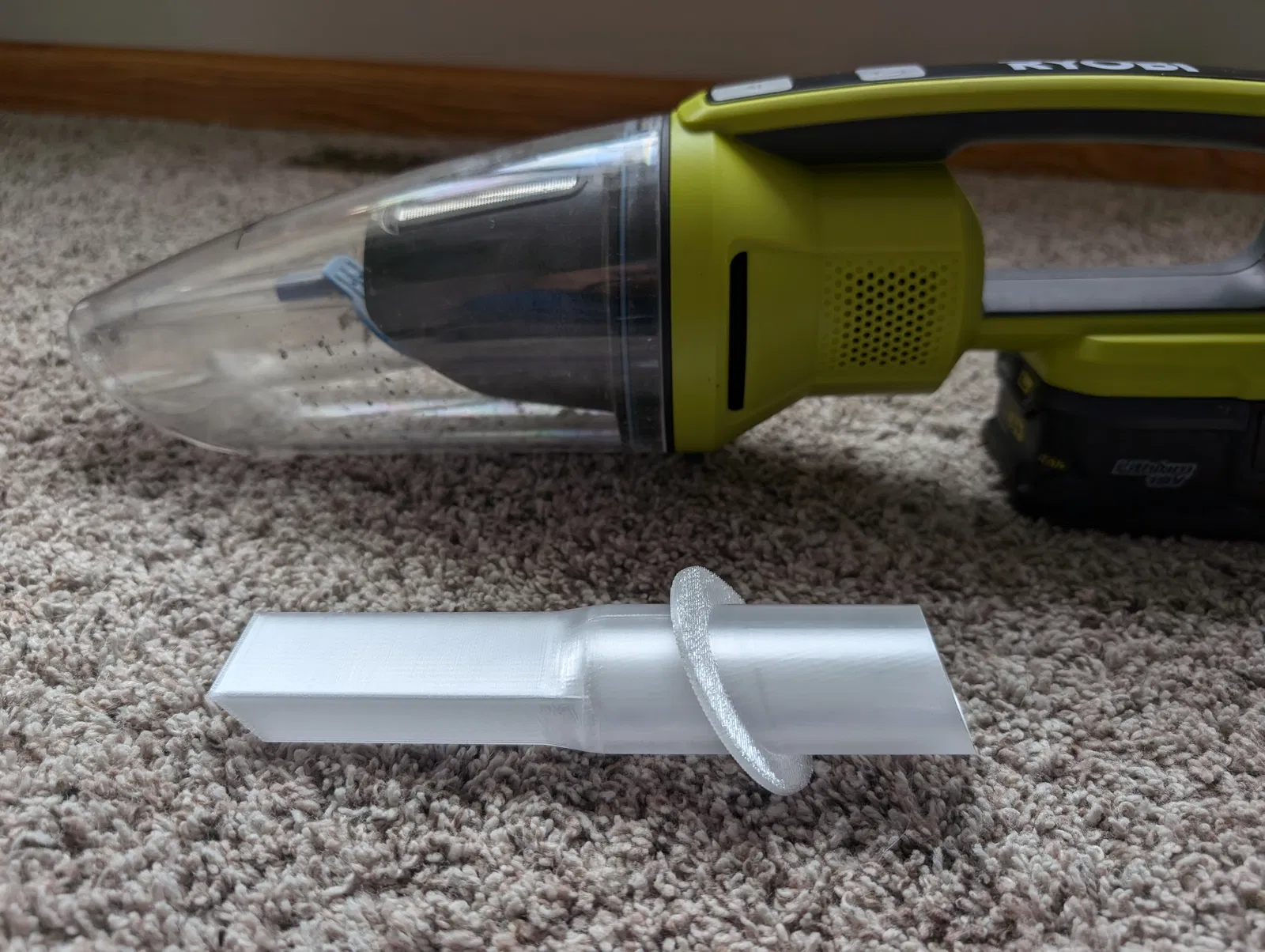 Đây là đầu hút ngắn nhưng có độ rộng lớn dành cho máy hút bụi cầm tay Ryobi PCL702. Phụ kiện này gắn vừa khít với máy hút bụi và không bị hở hơi như một số loại khác. Mình đã in bằng nhựa trong suốt PLA và sản phẩm vẫn rất bền sau nhiều tháng sử dụng. Nếu bạn in bằng nhựa PETG, hãy điều chỉnh tỉ lệ lên 100.1% để đảm bảo độ vừa vặn tốt nhất. Cần dùng support (hỗ trợ in). Khuyến khích nên dùng thêm lớp brim để bám bàn tốt hơn.