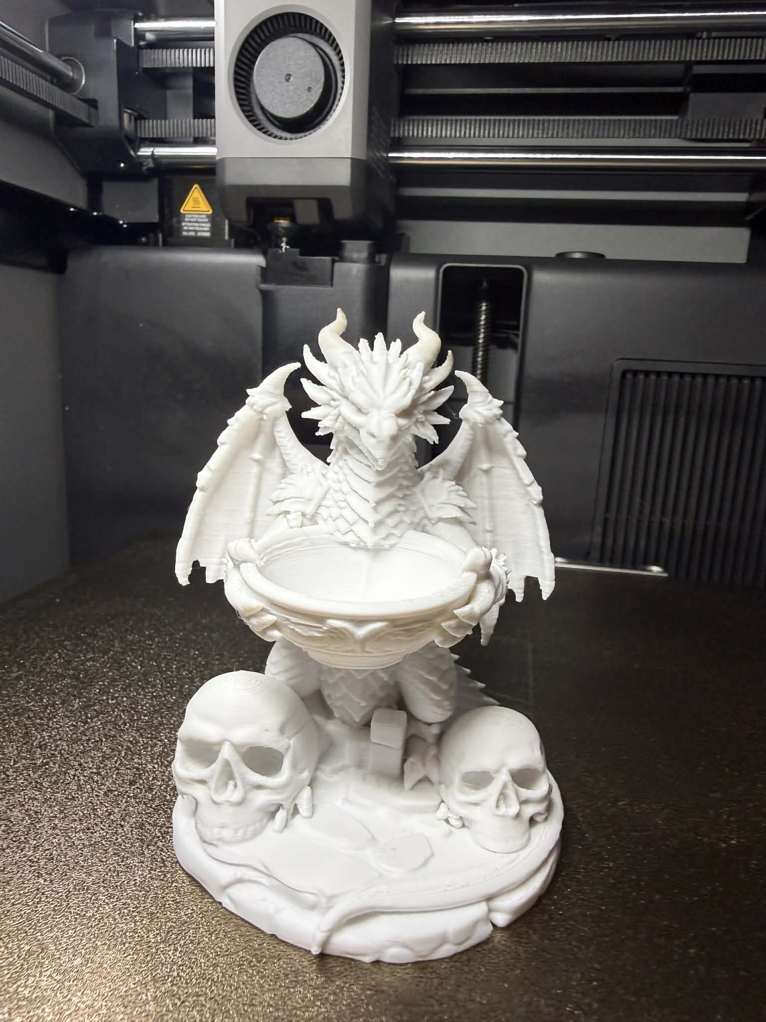 Mang chút ma thuật cổ xưa vào ngôi nhà của bạn với mô hình Rồng Bảo Hộ giữ chìa khóa này. Đây là mô hình in 3D chất lượng cao với hình ảnh chú rồng dũng mãnh đang ôm một chiếc bát, rất tiện để đựng chìa khóa, tiền xu hay các vật dụng nhỏ hàng ngày. Mô hình đã được tối ưu hóa để in sắc nét mà vẫn giữ được hiệu ứng thị giác ấn tượng. ### ✨ Đặc điểm nổi bật: Tượng rồng đứng kèm bát đựng đồ tích hợp Hình khối thân thiện với việc in 3D Thiết kế đế vững chãi Độ chi tiết cao nhưng đã tối ưu cho máy in FDM Hoàn hảo để trang trí lối ra vào, bàn làm việc hoặc decor theo phong cách fantasy ### 🖨 Thông số in đề xuất: Chiều cao lớp (Layer height): 0.16–0.2 mm Infill: 10–15% Support: Tối thiểu (chỉ cần dưới bát nếu cần) Chất liệu: PLA / PLA+ Tỉ lệ (Scale): Khuyên dùng 100% để đảm bảo độ ổn định tốt nhất. Cho dù bạn đang tham gia cuộc thi thiết kế Old World Magic hay chỉ đơn giản là muốn tìm một món đồ sắp xếp đồ đạc đầy phép thuật, chú rồng bảo hộ này luôn sẵn sàng trông coi chìa khóa giúp bạn.