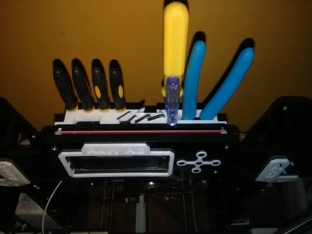 Giá đỡ công cụ cho anet a8 được gắn trên giá đỡ màn hình LCD cùng với 4 dụng cụ làm đầy bổ sung.