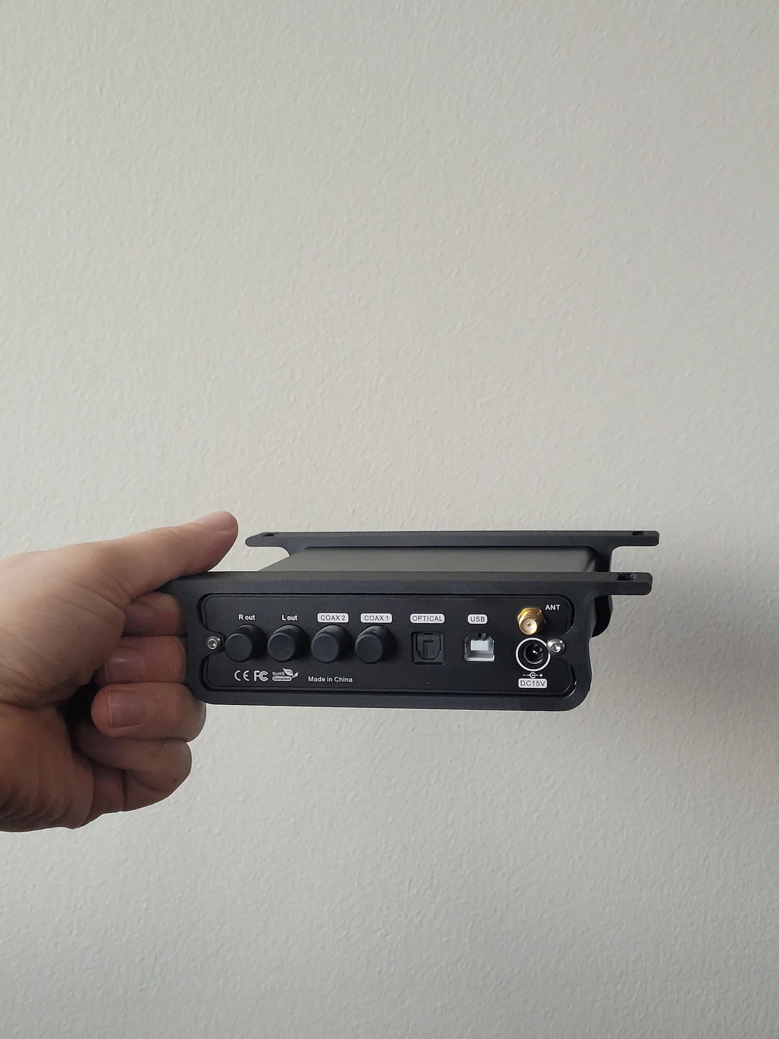 Nói chung, cách sử dụng bộ giá đỡ này rất dễ hiểu. Bạn chỉ cần trượt mảnh phía trước vào từ phía sau, rồi lắp mảnh phía sau vào. Giá đỡ được cố định bằng cách tận dụng lại 2 con ốc vít có sẵn ở mặt sau của DAC.