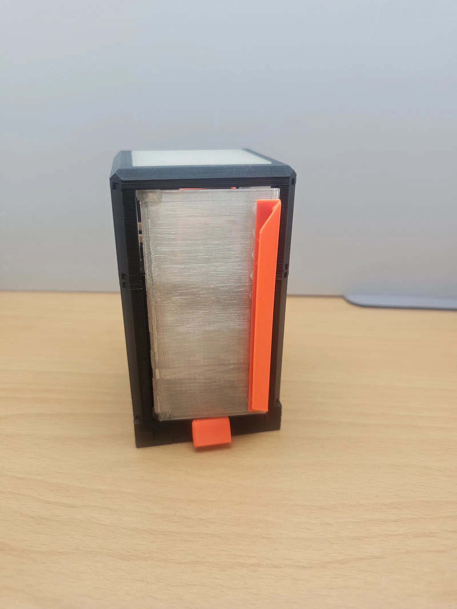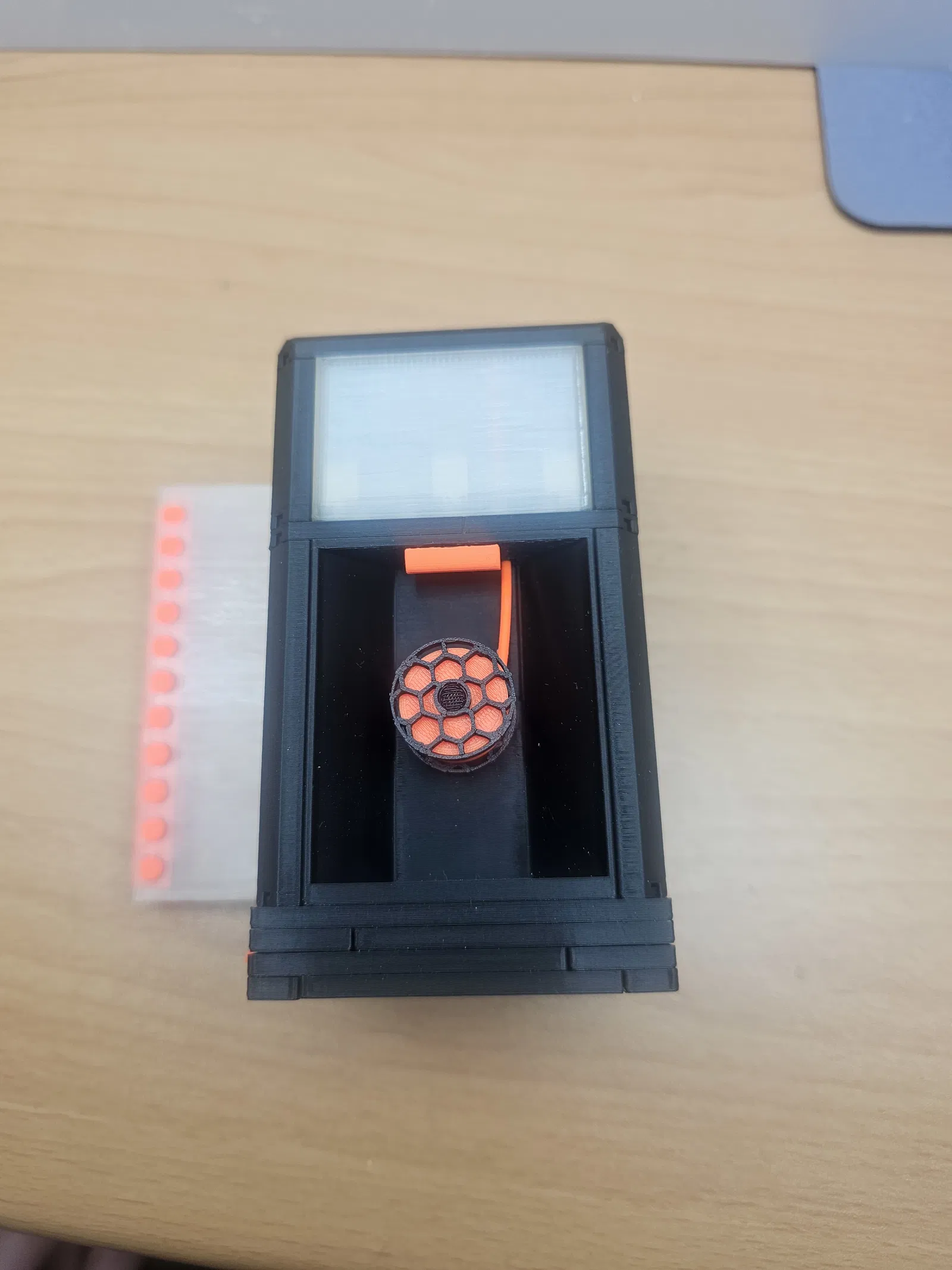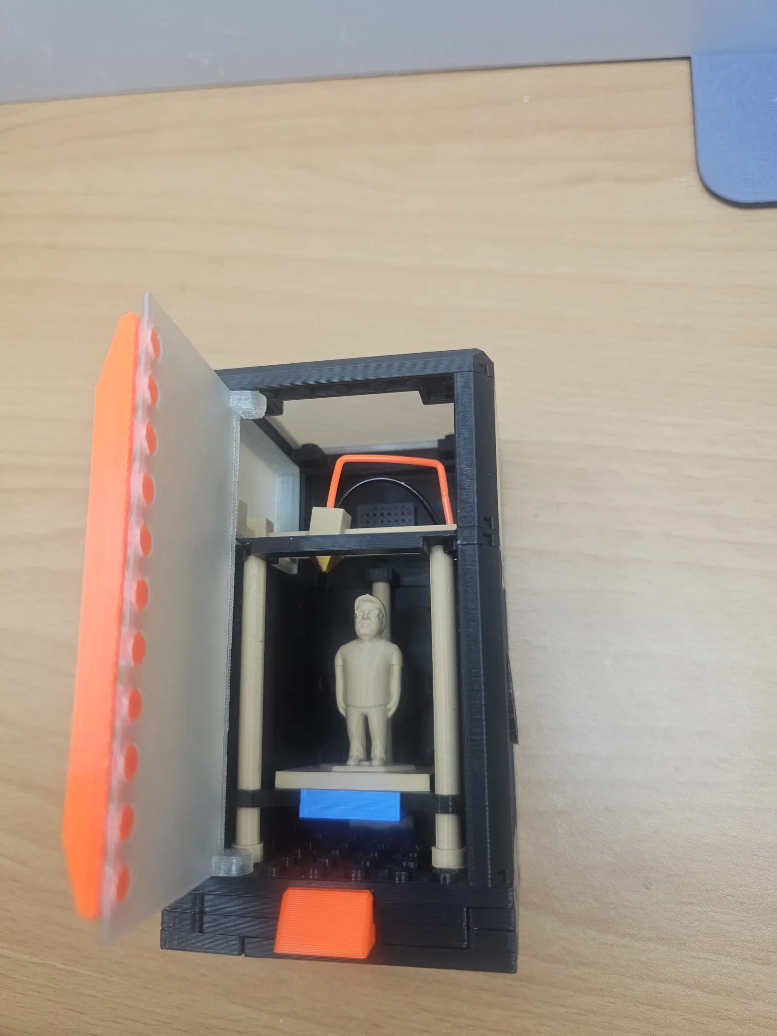 Bạn hãy thử in phần cửa, nắp trên và các tấm ốp bên trên bằng chất liệu trong suốt để tạo hiệu ứng đẹp hơn nhé. Mình đã dùng loại PLA trong suốt, nhưng như bạn thấy trong ảnh, nếu dùng loại xuyên thấu hơn thì nhìn sẽ còn tuyệt hơn nữa.