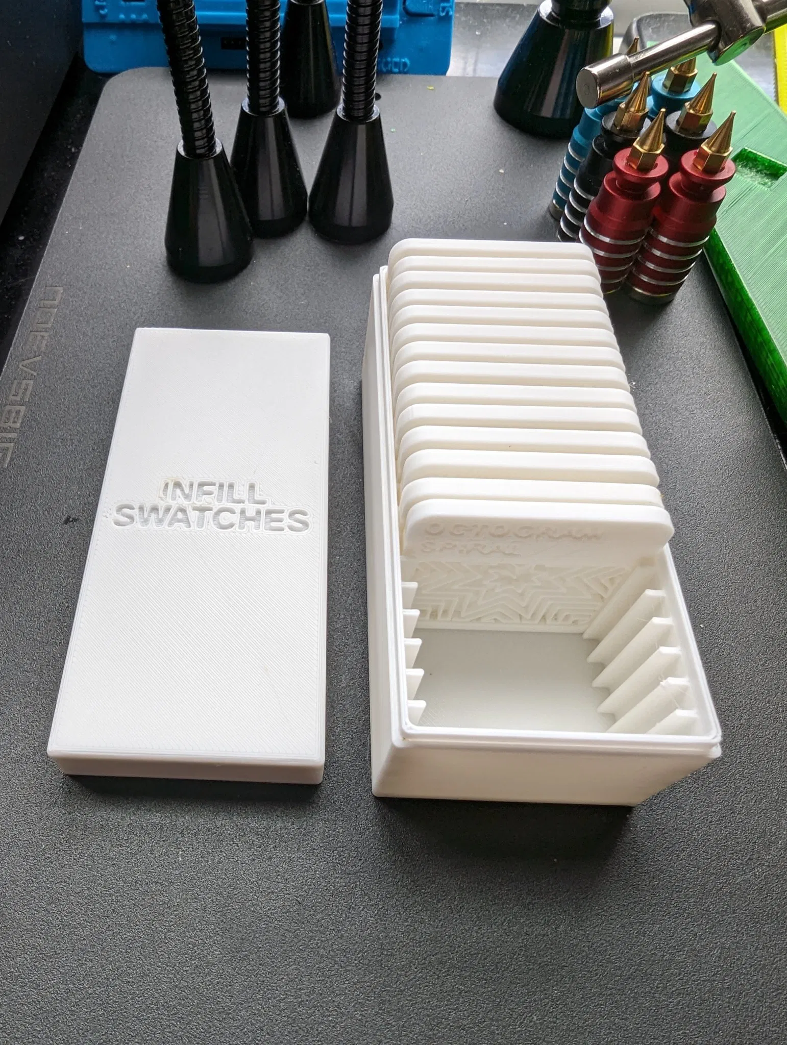 Sau khi in các swatches infill của ORAX, tôi muốn một cách để lưu trữ chúng.