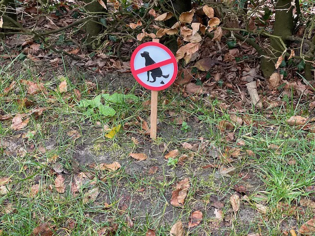 Biển báo cấm chó đi vệ sinh ngoài sân vườn