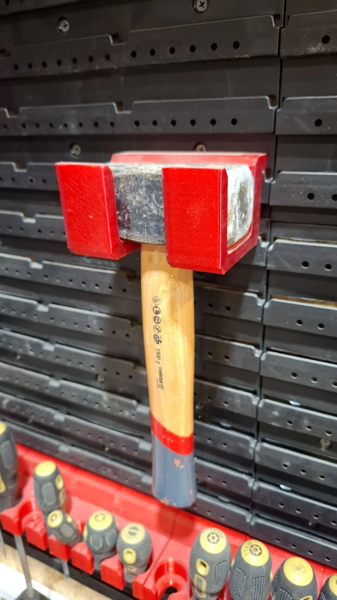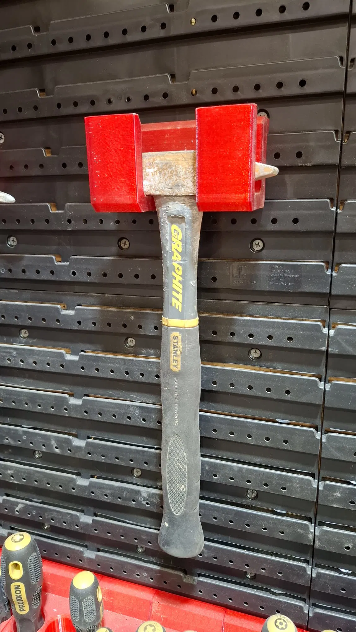 Giá treo búa được thiết kế cho hệ thống bảng treo dụng cụ Allit ProfiPlus Endless. Mẫu này hỗ trợ đầu búa có kích thước tối đa 30mm/48mm, lấy cảm hứng từ phong cách Gridline của Garant. Phù hợp in với nhựa PETG và cần dùng support.