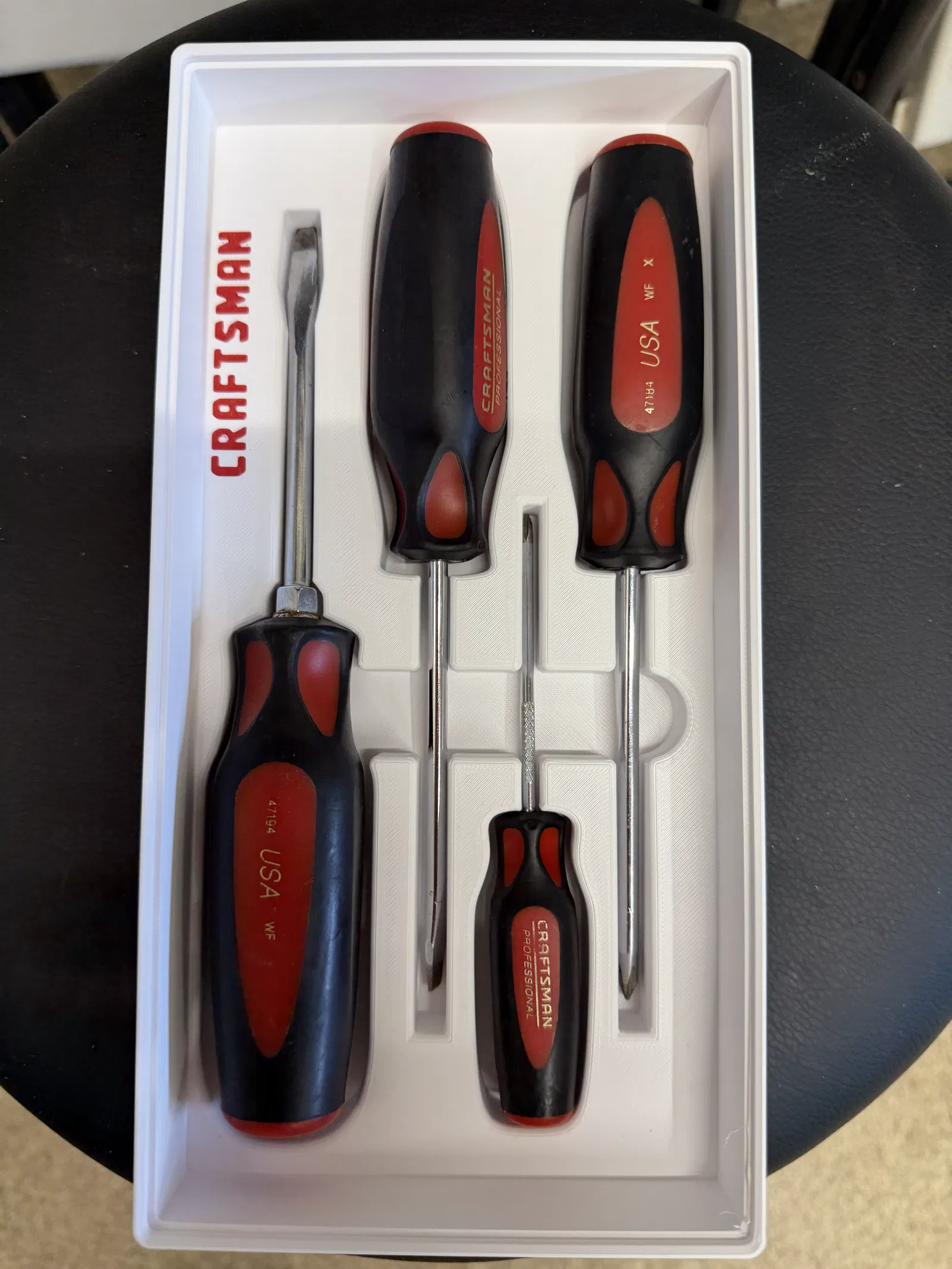 Khay Gridfinity 3x6x6 được thiết kế riêng cho các dòng tua vít Craftsman Professional đời cũ (sản xuất trước 2014). Tệp bao gồm tùy chọn in hai màu và tệp f3d để dễ dàng chỉnh sửa profile theo nhu cầu sử dụng của bạn.