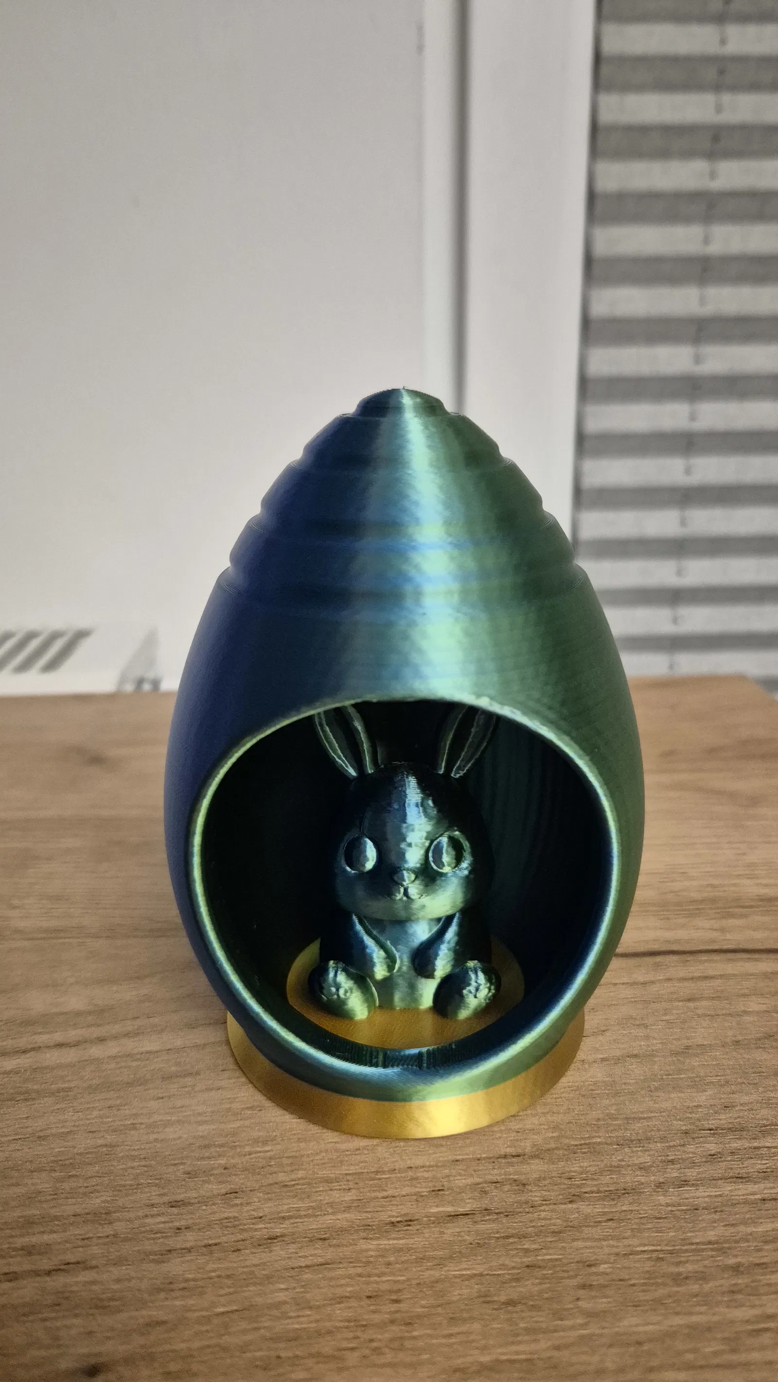 Một mẫu trang trí tuyệt đẹp cho dịp lễ Phục sinh với hình ảnh chú thỏ nhỏ nằm gọn bên trong quả trứng. Mẫu in không cần dùng support, cực kỳ phù hợp để in với nhựa multicolor hoặc nhựa thông thường để làm vật phẩm trang trí.