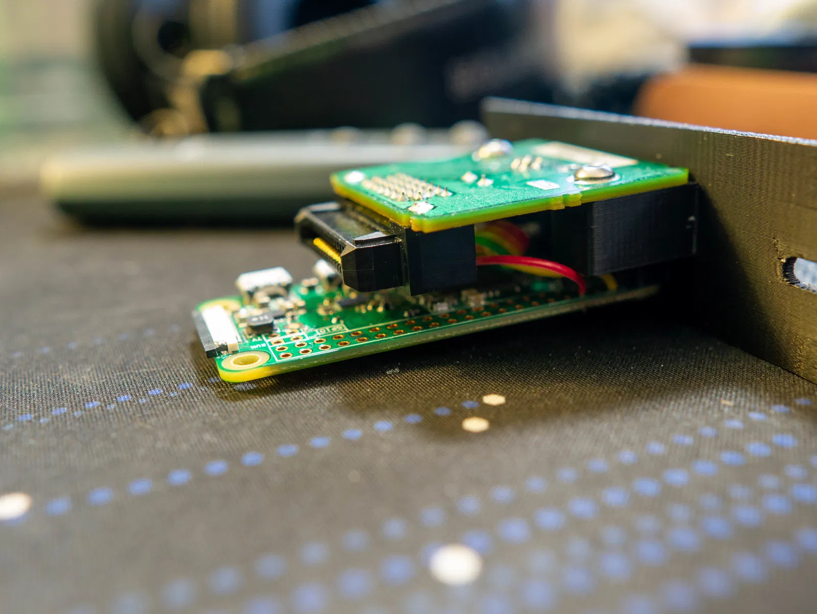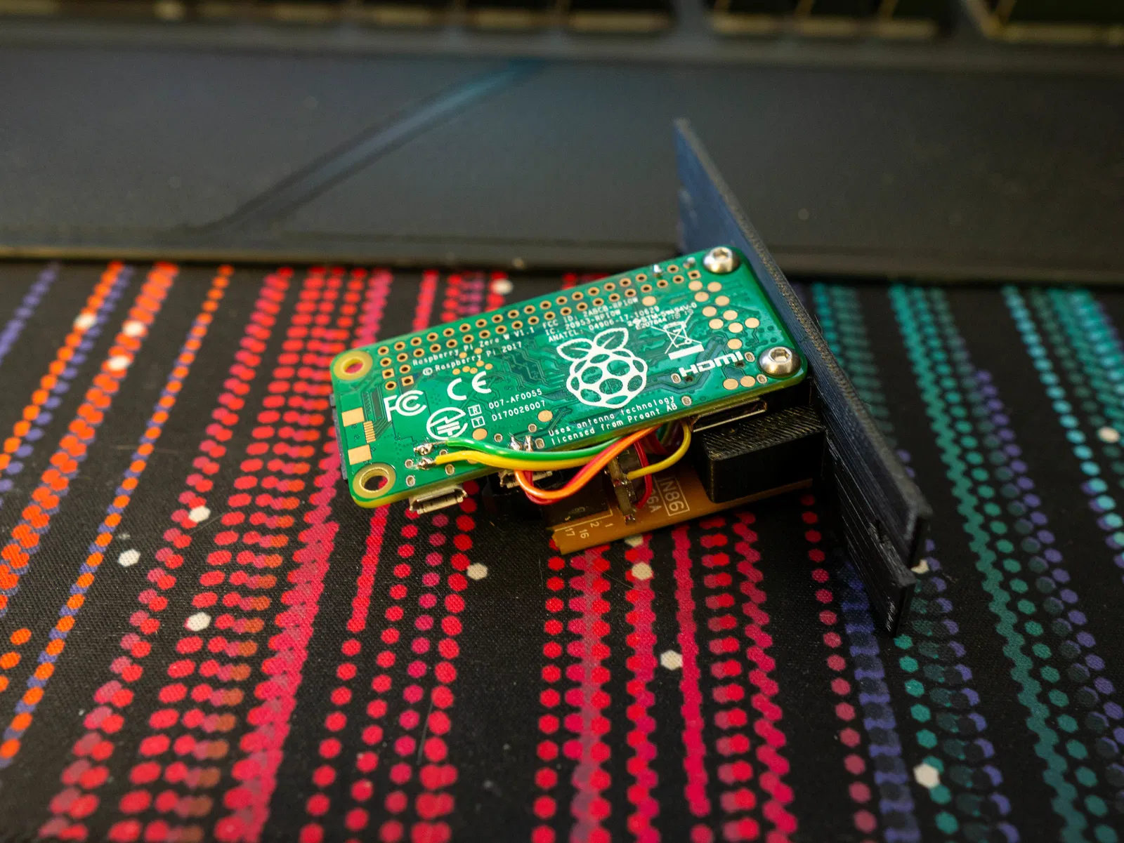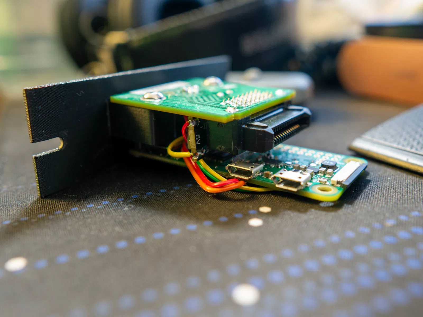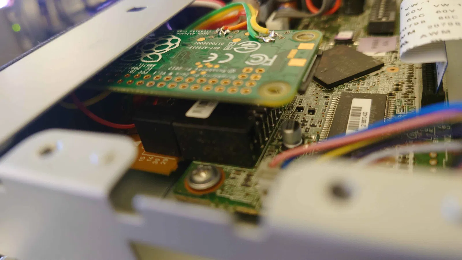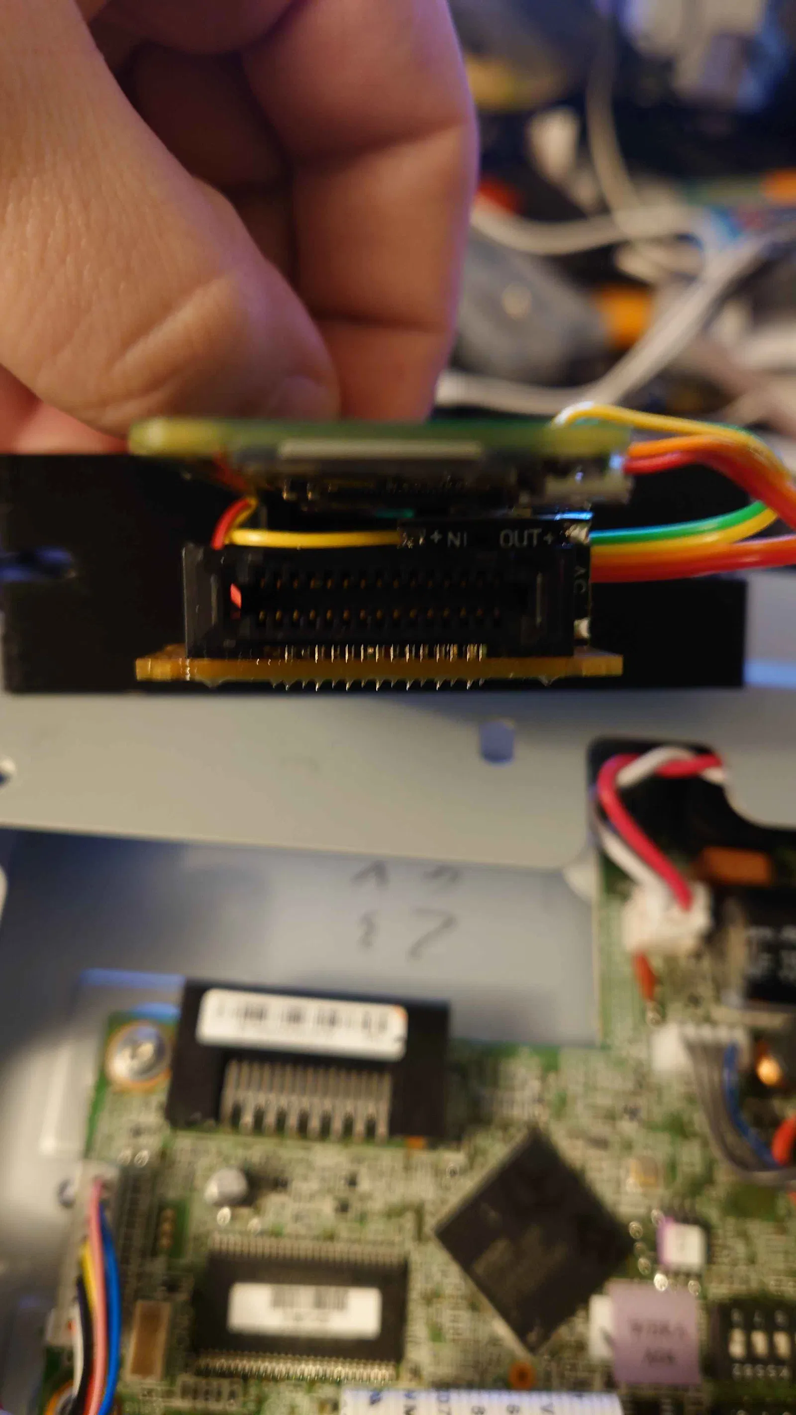 Có 2 chân từ card đã được cắt và hàn trực tiếp vào bộ chuyển đổi DC-DC. Mình chưa tìm được chỗ nào ưng ý để cố định phần này, nên rất hoan nghênh mọi góp ý. Hiện tại thì mối hàn đang giữ nó khá ổn định.