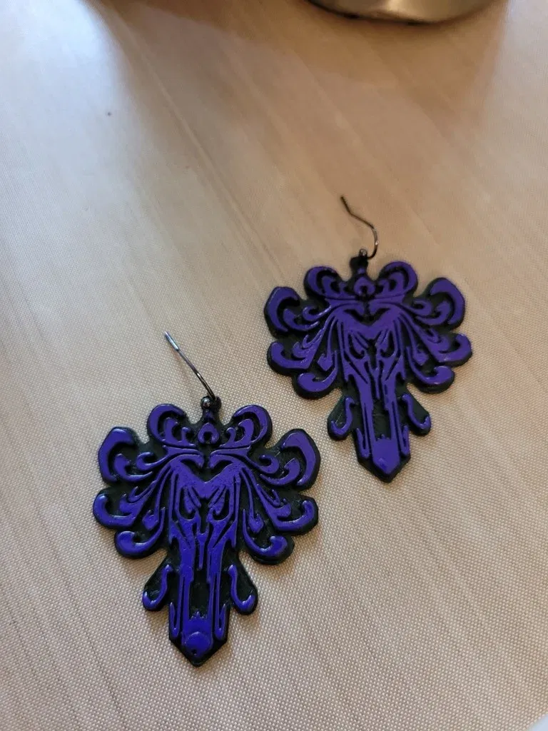 Mẫu bông tai này được thiết kế dựa trên các họa tiết đặc trưng của Haunted Mansion, với sự tinh tế trong từng chi tiết nhỏ. Việc in 3D giúp bạn tùy chỉnh màu sắc theo ý thích, chẳng hạn như phối hai màu như trong ảnh mẫu để tạo điểm nhấn thị giác mạnh mẽ. Đây cũng là một món quà tuyệt vời dành cho những ai đam mê các biểu tượng văn hóa Disney hoặc muốn sở hữu một món trang sức thủ công độc nhất vô nhị. Quy trình thực hiện khá đơn giản và phù hợp với cả những người mới bắt đầu làm quen với công nghệ in 3D tại nhà.