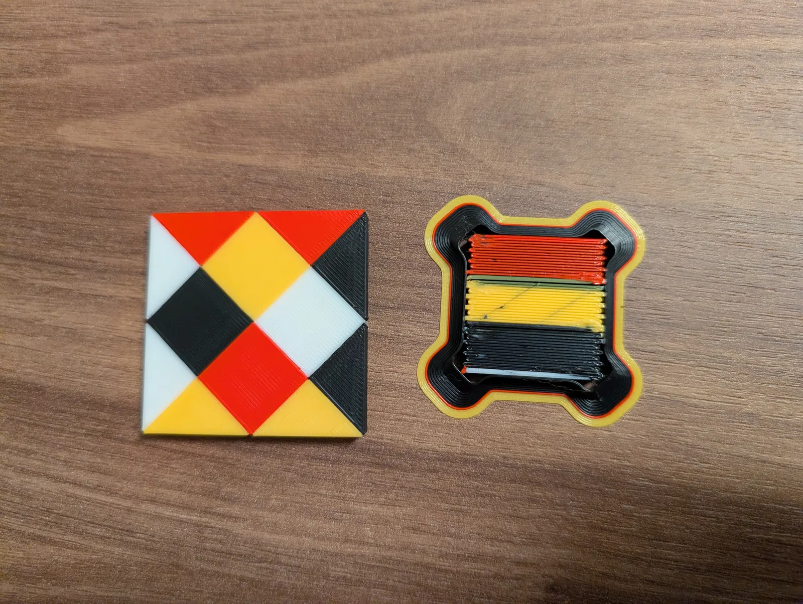 Khối vuông kiểm tra nhanh cho Snapmaker U1, giúp đảm bảo cả 4 đầu in hoạt động đồng bộ và đã được cân chỉnh. Chỉ tốn 9g nhựa, đây là cách hoàn hảo để kiểm tra máy trước khi chạy các dự án đa vật liệu lớn.