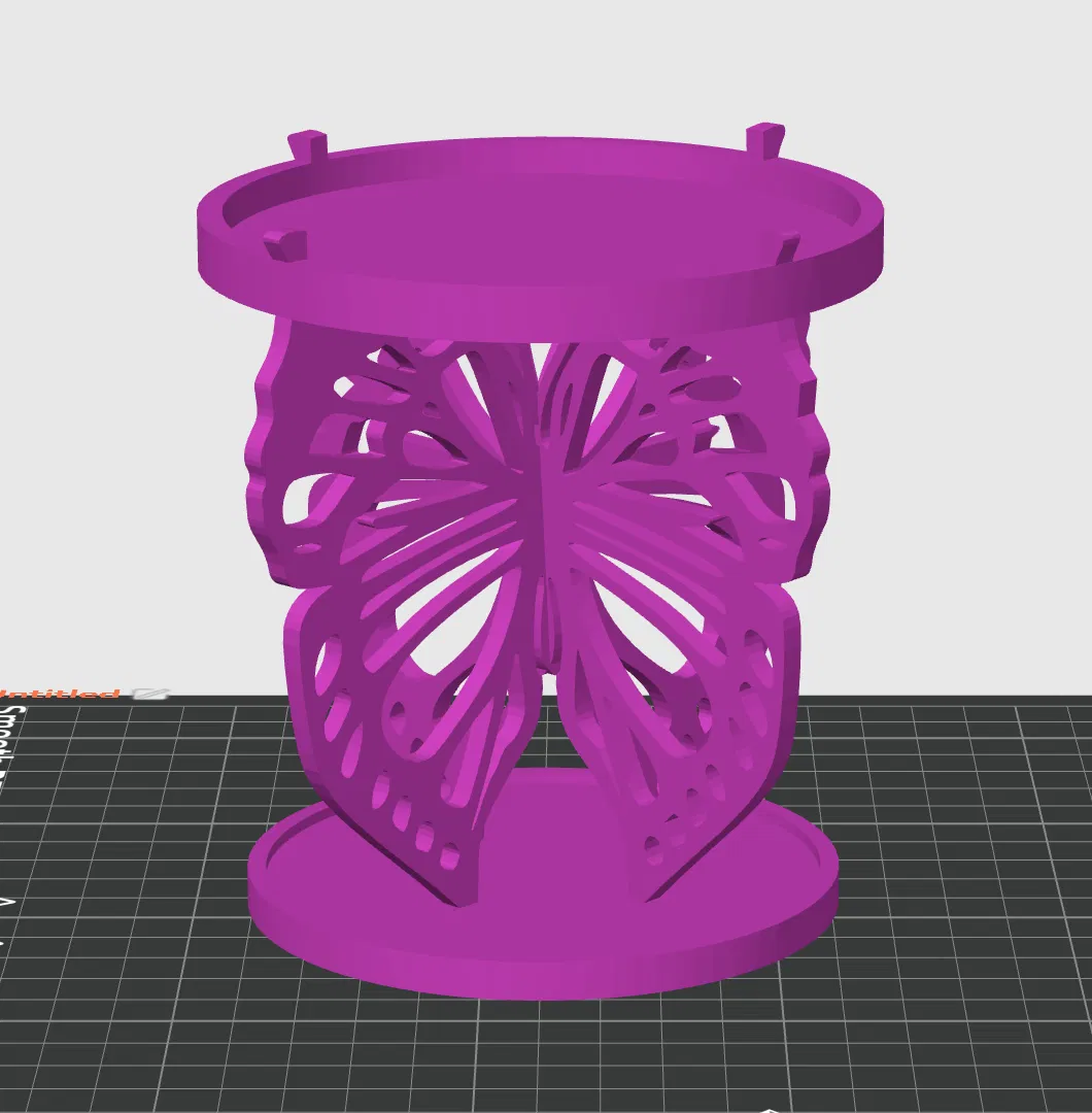 Mẫu đế nến với phần đế tròn cách điệu hình cánh bướm, được thiết kế chuyên dụng cho các loại nến hũ lớn. Sản phẩm là phụ kiện trang trí hoàn hảo, cần lưu ý in bằng nhựa PETG để đảm bảo độ bền nhiệt khi sử dụng thực tế.