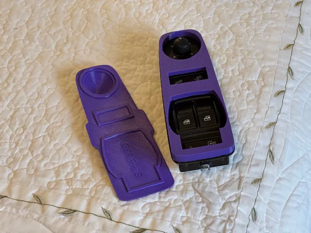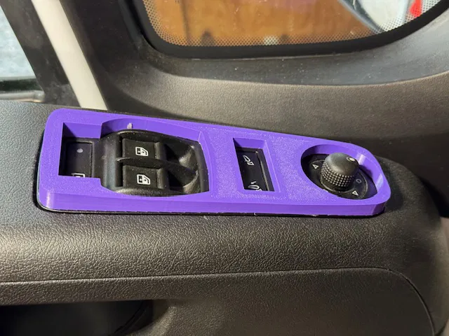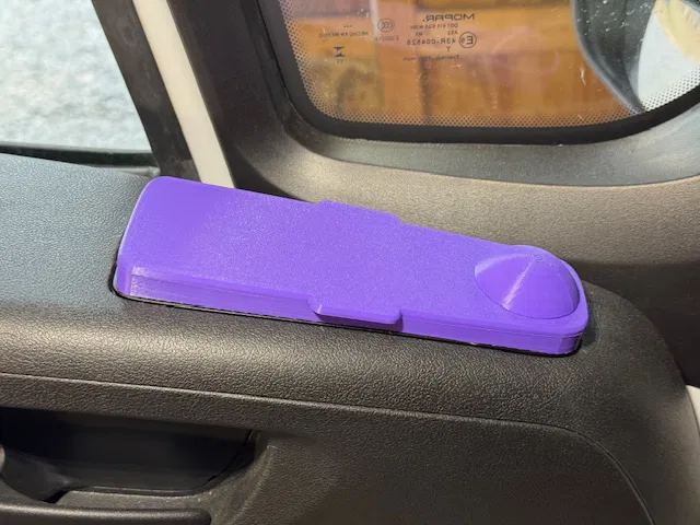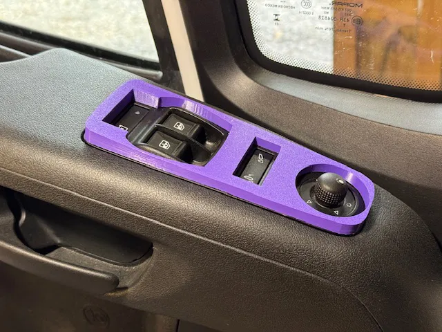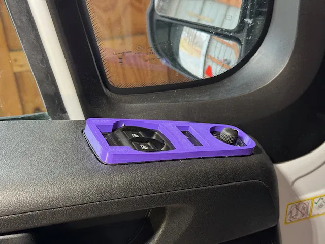 Tôi đã thiết kế một vài phụ kiện cho xe Promaster. Nhiều người bảo rằng họ đang cần một miếng che bảng điều khiển cửa sổ để tránh việc thú cưng vô tình khóa cửa hoặc mở cửa sổ xe. Dù hiện tại tôi không còn nuôi thú cưng nữa, nhưng tôi đã thử làm một cái xem sao.