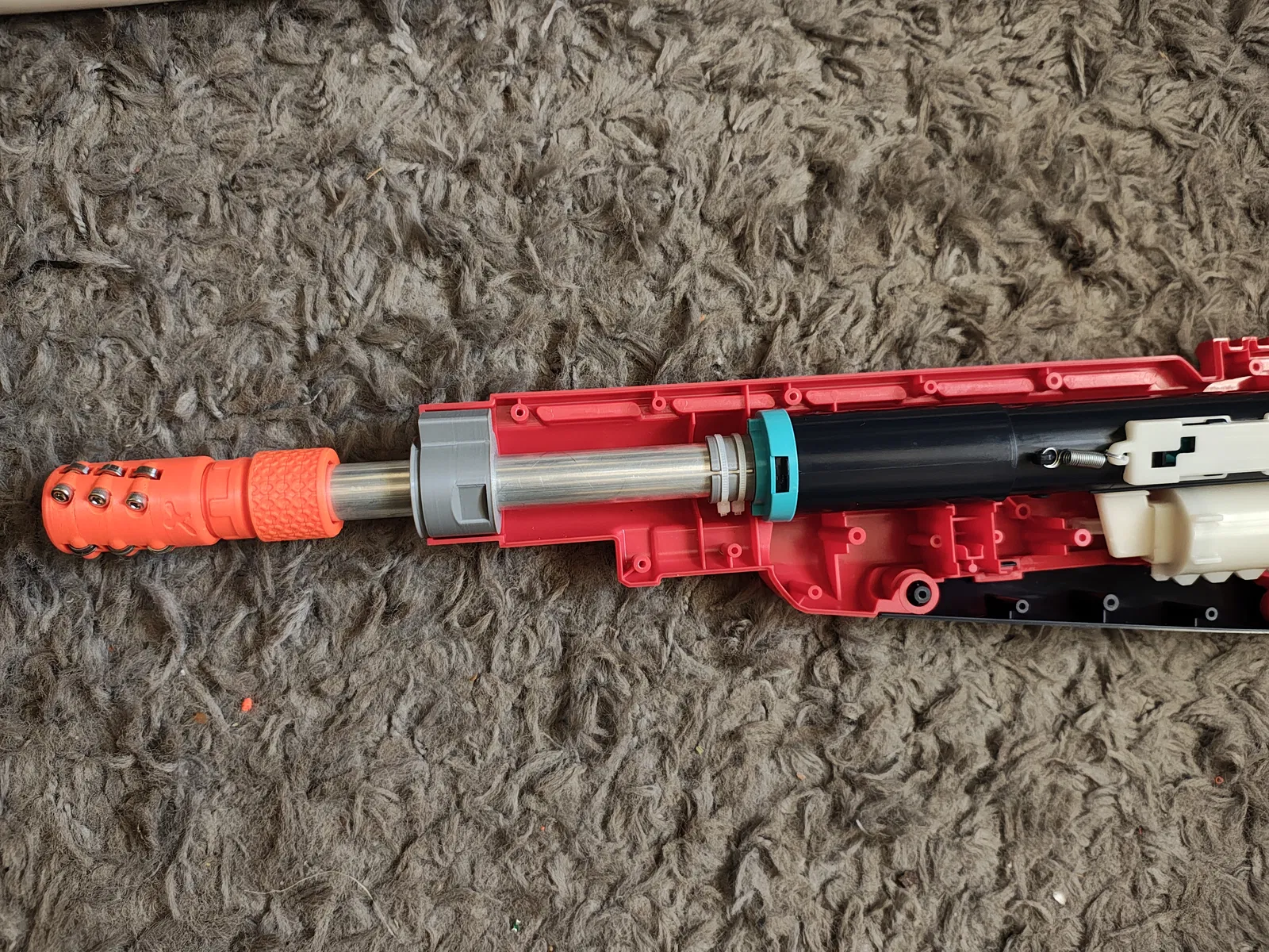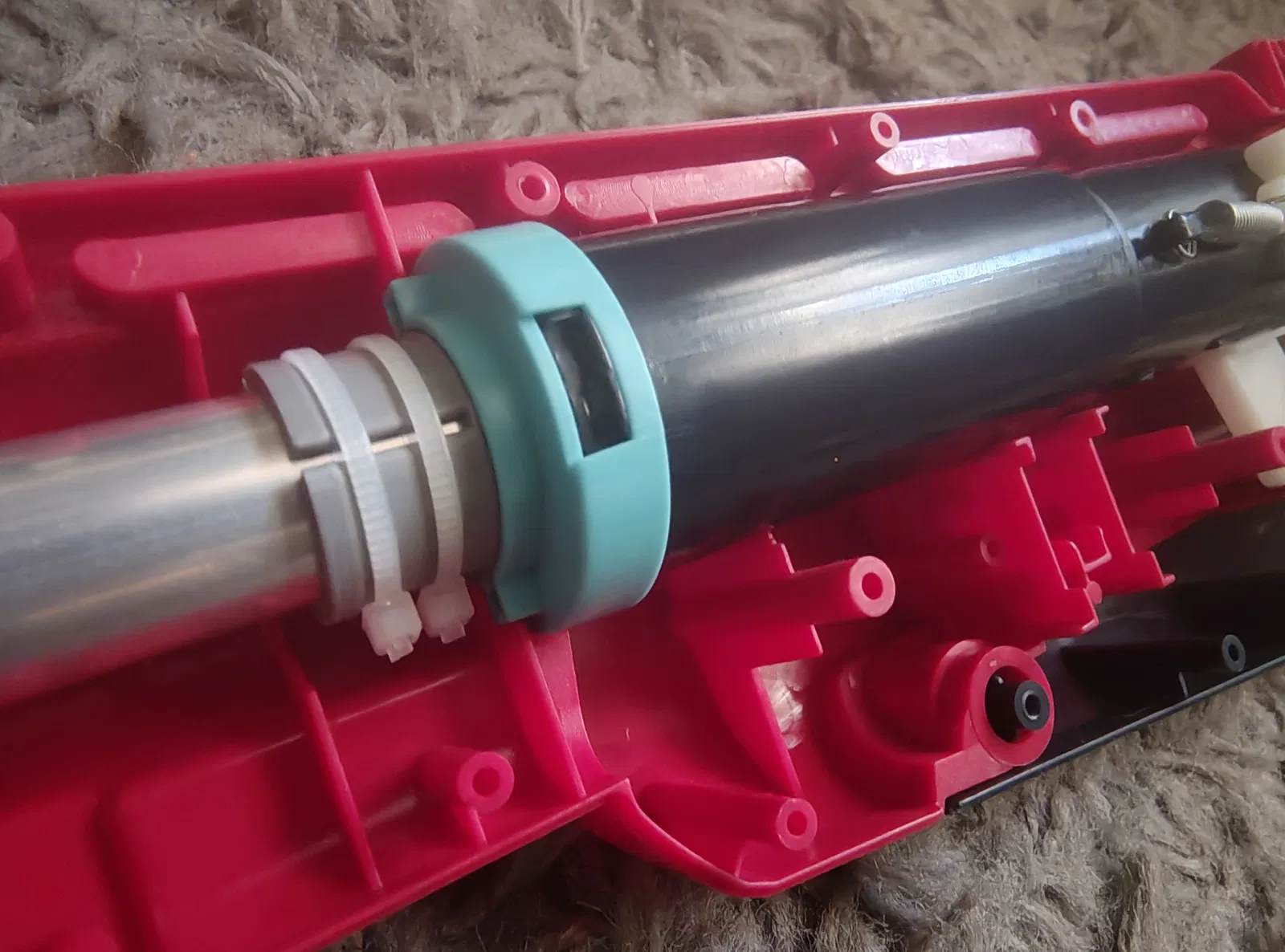 - Tháo phần nhựa và lò xo cũ ra rồi thay thế bằng bản in này. Bạn có thể dùng dây rút (zip ties) để cố định nòng nếu cần thiết.