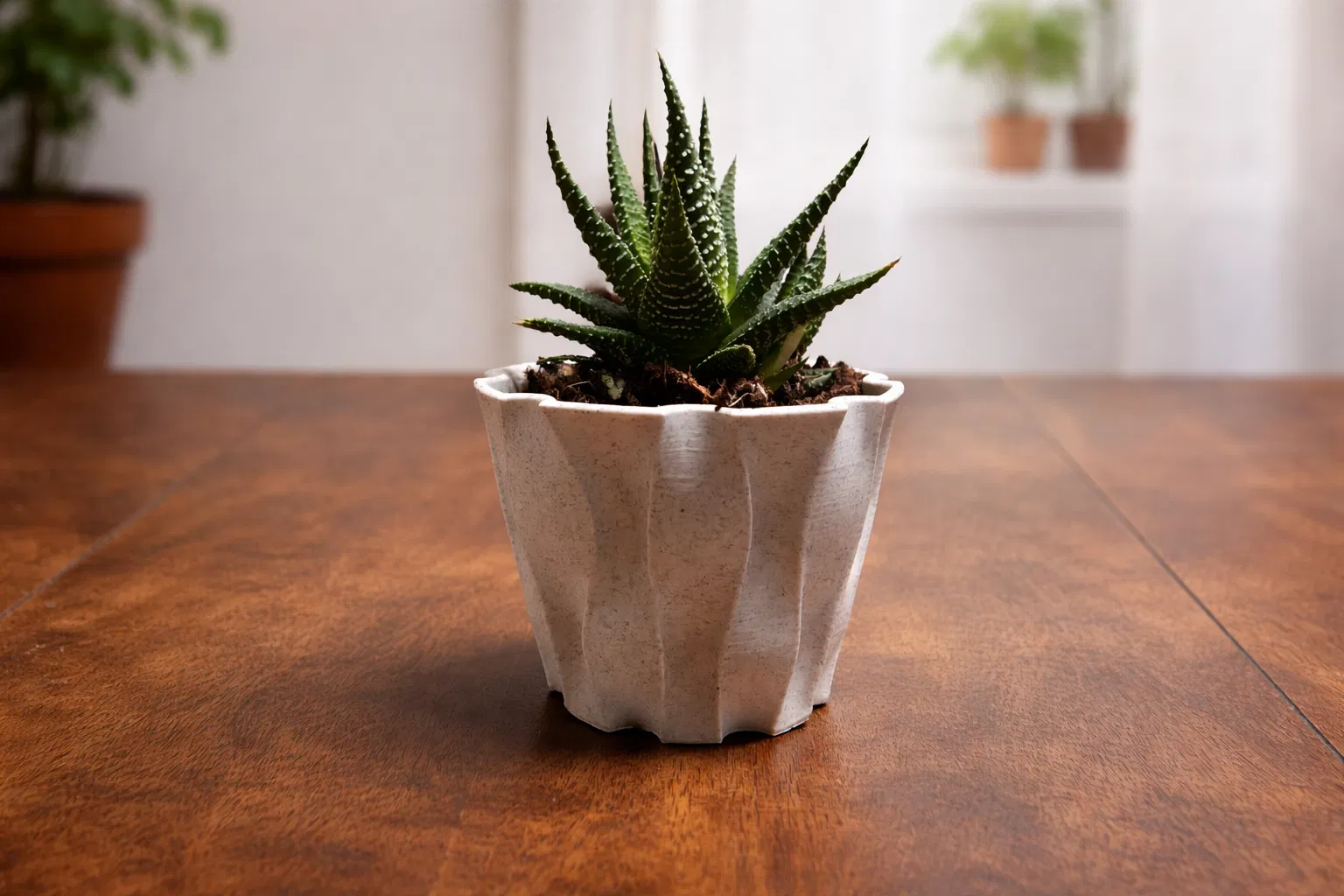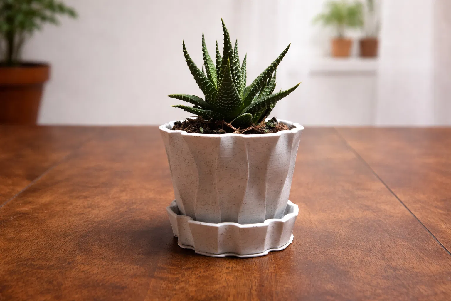 Mẫu chậu trồng cây nhỏ gọn với thiết kế hình học tinh tế, đi kèm khay hứng nước tiện lợi. Sản phẩm tối ưu để in bằng máy FDM mà không cần dùng support, cực kỳ phù hợp cho các loại cây sen đá hoặc cây cảnh để bàn.