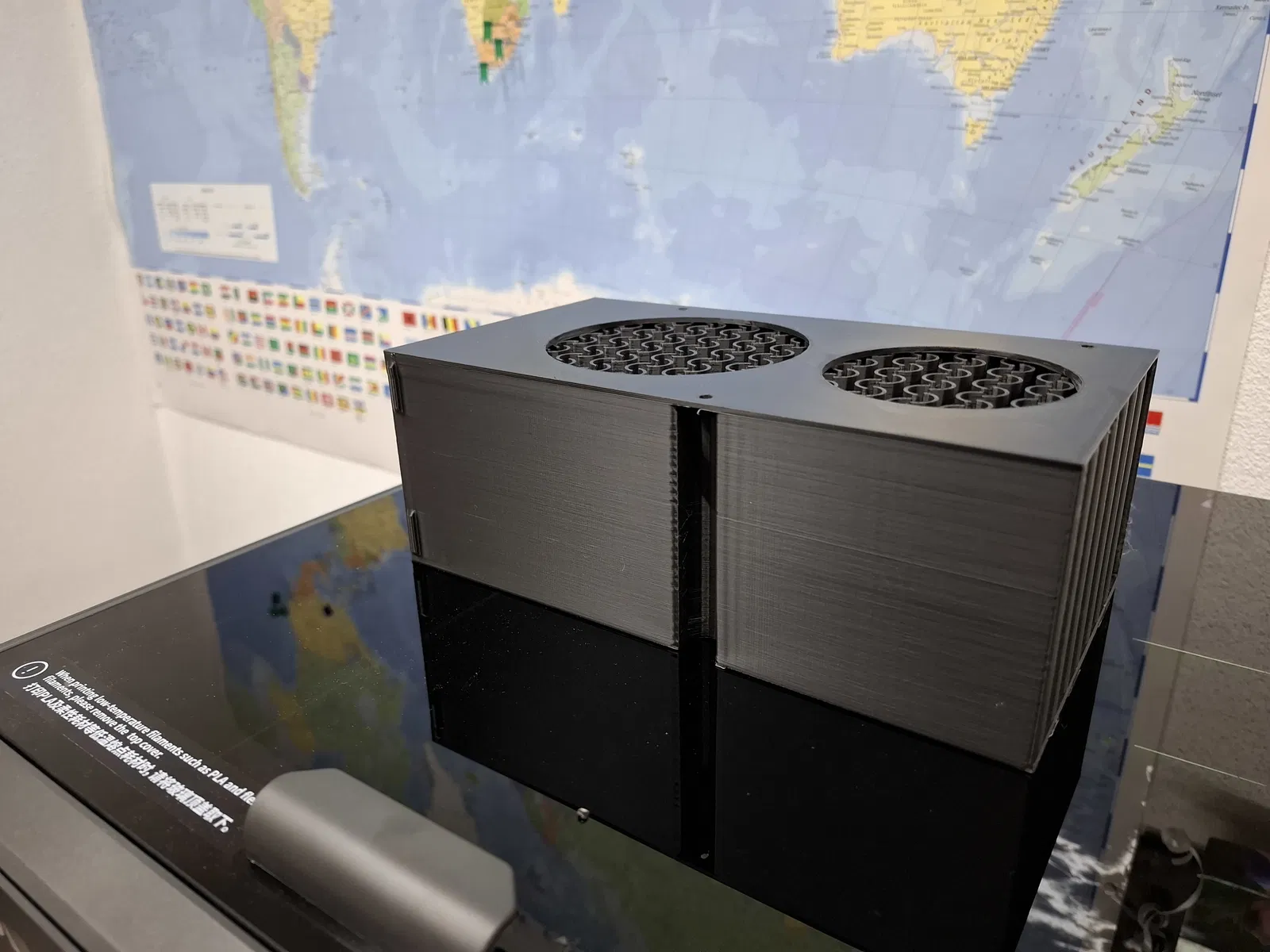 Thời gian in khá lâu, khoảng 17 tiếng và tốn tầm 500g nhựa. Mình in với thiết lập hỗ trợ (support) chỉ từ mặt bàn in (from bed) và thấy rất ổn.