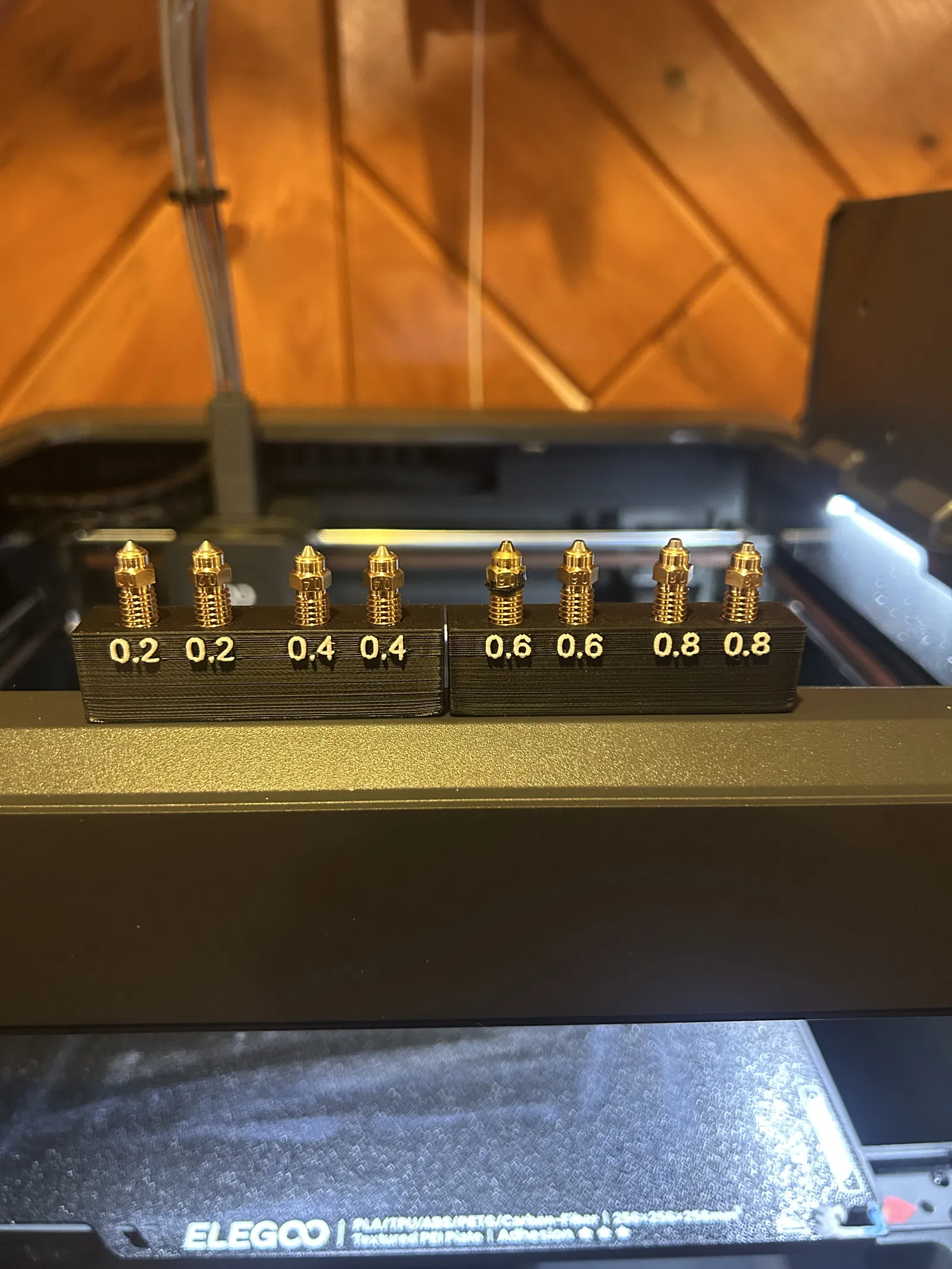 Sản phẩm này cực kỳ hữu ích nhờ thiết kế thông minh với các vị trí cắm cố định cho từng loại nozzle. Bạn có thể sắp xếp gọn gàng mỗi loại 2 cái cho các kích thước từ 0.2mm đến 0.8mm. Điểm đặc biệt của thiết kế này là mặt sau được khoét sẵn các lỗ tròn có kích thước 6mm x 3mm, cho phép bạn gắn nam châm vào. Nhờ vậy, bạn có thể dễ dàng hít khay lên khung máy in hoặc bất kỳ bề mặt kim loại nào gần đó, giúp nozzle luôn trong tầm tay khi cần thay thế.