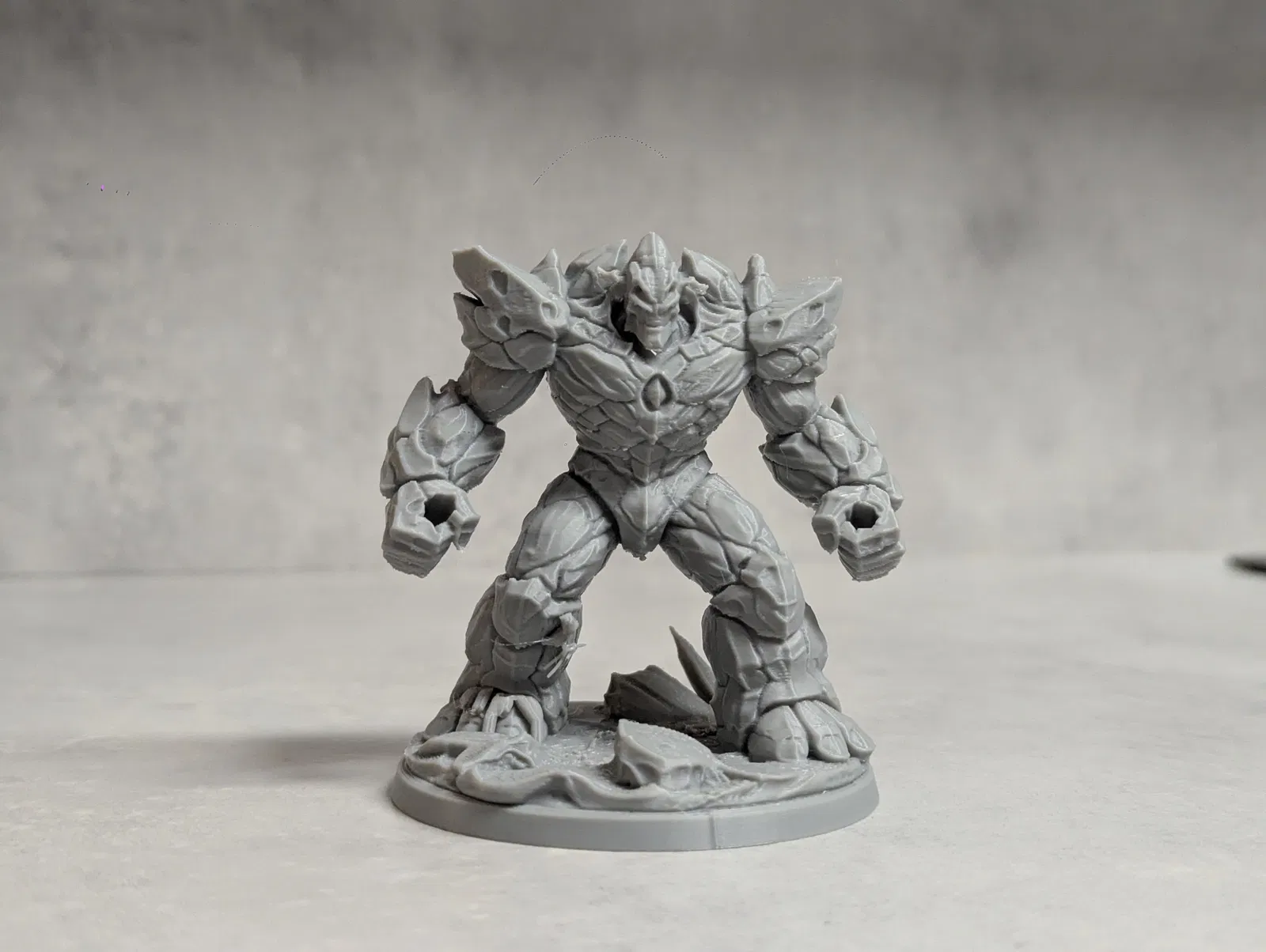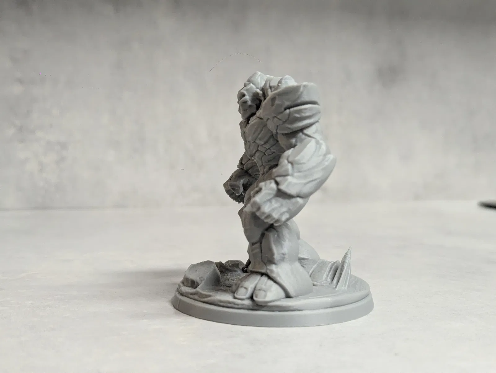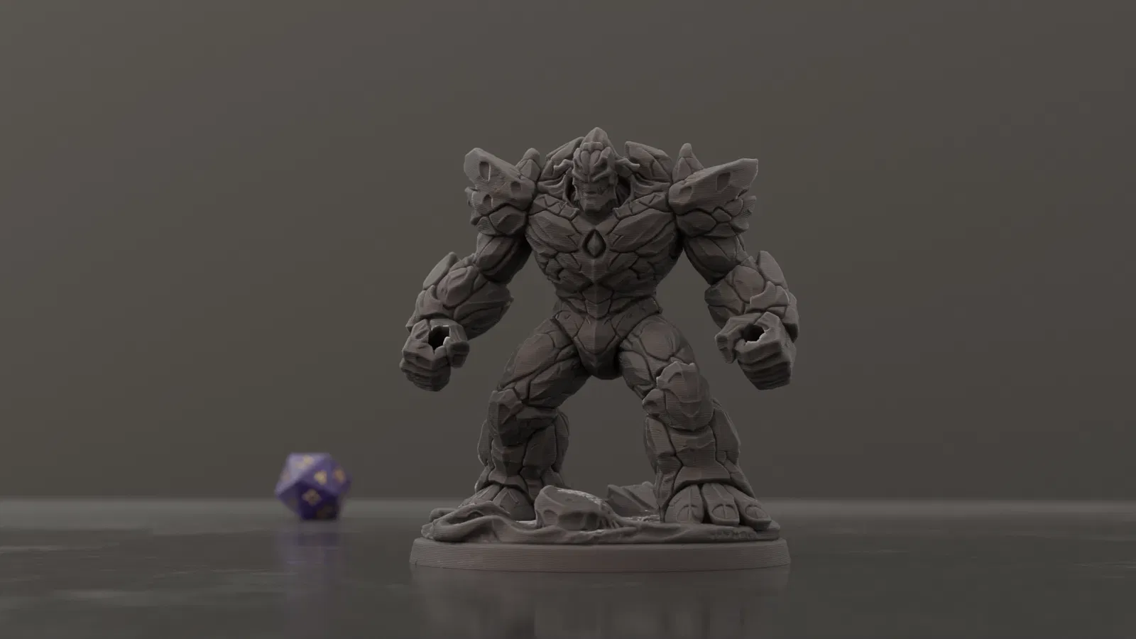 Một mô hình... thu nhỏ của Golem đá dành cho DnD, đi kèm với phần đế. Đây là một mẫu khá lớn, nên gọi là mô hình thu nhỏ có lẽ không hoàn toàn chính xác.