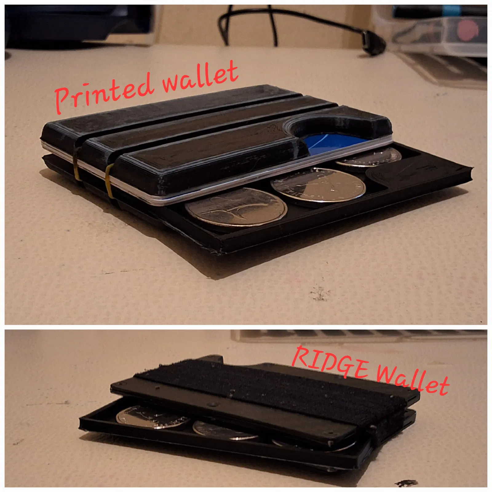 Một chiếc khay đựng tiền xu và tiền mặt nhỏ gọn, được gia cố chắc chắn hơn dành cho ví Ridge hoặc các mẫu ví in 3D cùng kiểu dáng. Sản phẩm dễ in, tương thích tốt với các dòng ví sử dụng dây thun.