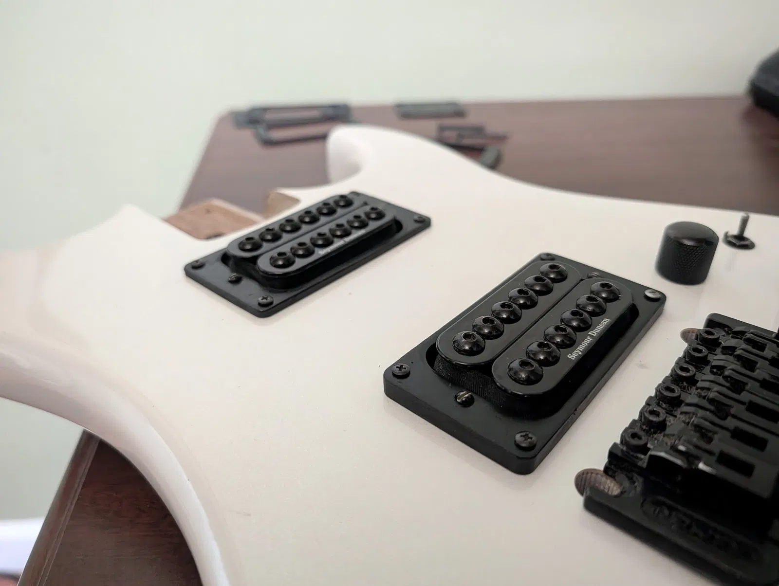 Chiếc Kramer Pacer 2016 của mình được chủ cũ lắp bộ Seymour Duncan Invaders, nhưng mấy cái vòng đệm pickup (pickup rings) lại không khớp hoàn hảo do lỗ vít không căn chỉnh đúng với vị trí cũ, làm chúng bị cong ở mặt dưới. Các bạn lưu ý là khoảng cách lỗ vít có thể cần phải điều chỉnh để vừa với cây đàn của riêng bạn. Thay vì phải trám rồi khoan lại lỗ trên thân đàn, mình thấy in vài cái vòng đệm mới với khoảng cách lỗ chuẩn cho đàn của mình thì dễ dàng hơn.