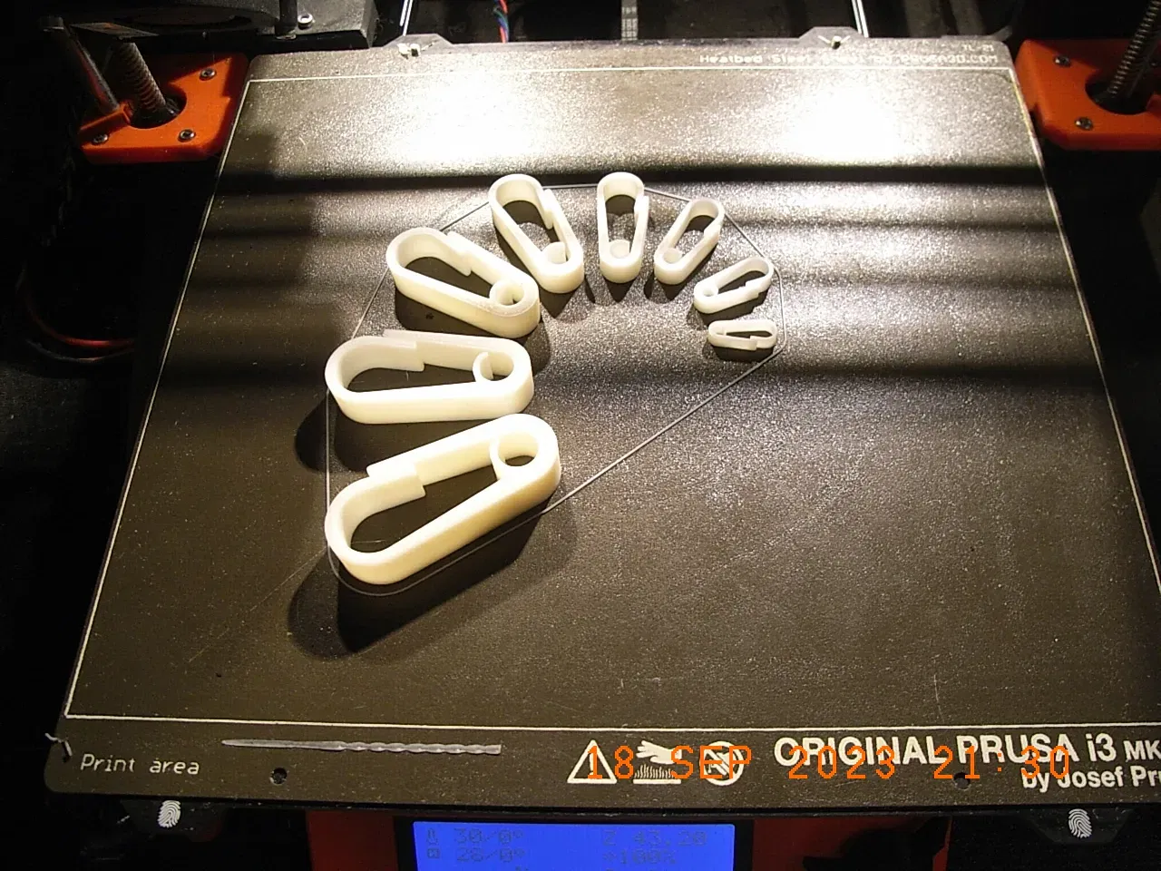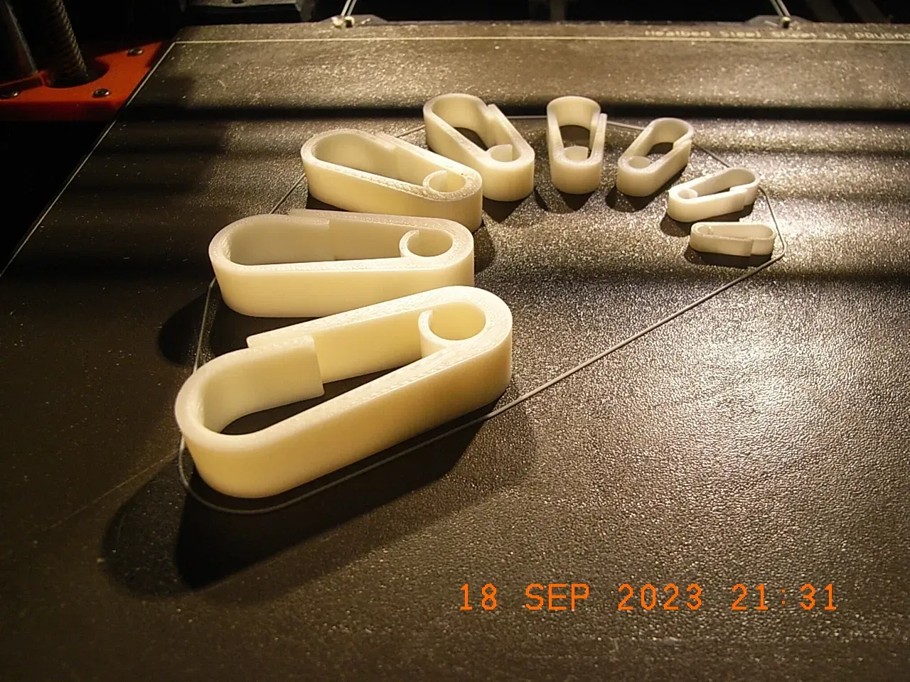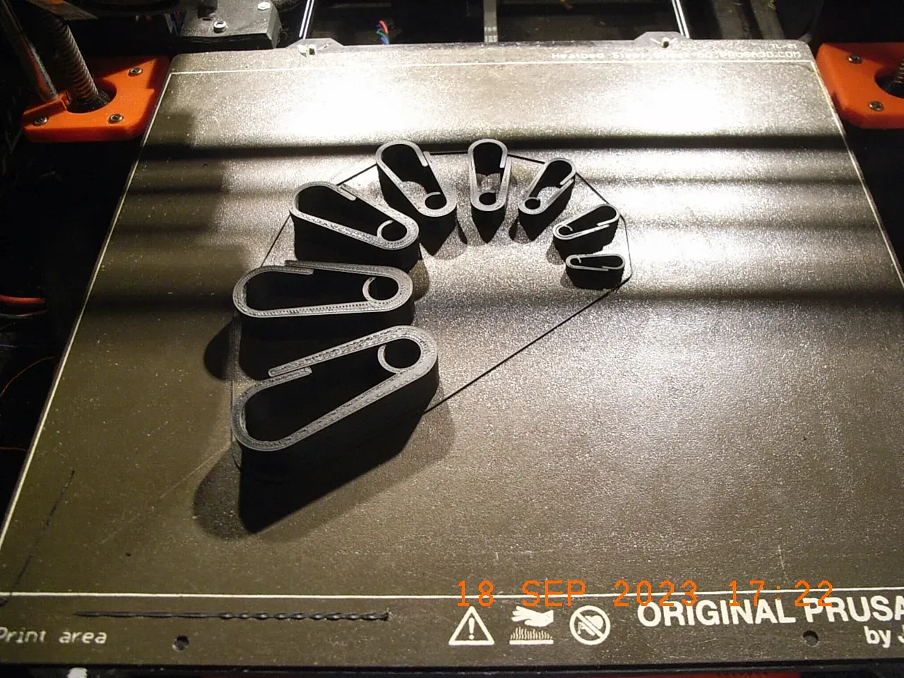 Cập nhật 20.09.2023 Tôi đã tạo ra 2 phiên bản cải tiến từ phiên bản gốc. Phiên bản gốc có vấn đề là chân thường xuyên bị gãy ở khớp nối với chốt mà ngăn cản việc uốn cong. Tôi đã mở chốt, vì vậy thiết kế mới có ít nhất 2 ưu điểm: 1. Do thiết kế mở, độ căng của lò xo được phân phối đều trên toàn bộ phần và việc gãy không còn là vấn đề nữa 2. Chốt hiện đã mở, vì vậy có thể giới thiệu một vòng khép kín như những cái tôi bện cho USB Stick và các thứ khác (xem hình ảnh) Các phiên bản “Chốt mở” theo thiết kế này. Đối với những ai không quá quan tâm đến độ căng của lò xo, tôi cũng đã tạo ra một phần in ngay tại chỗ, vì vậy bạn không cần phải đặt chân/thanh bên trong vào phần nữa, vì nó được in bên trong. Bạn sẽ có một khoảng trống 0,3mm, nhưng điều này là chấp nhận được cho nhiều ứng dụng. Đây là các phiên bản “in ngay tại chỗ”. Xem hình ảnh, tệp STL và tệp gcode để biết thêm chi tiết. Lại có các kích cỡ từ 15mm đến 50mm có sẵn. Tôi cũng đã tạo ra một thiết kế USB-Stick hẹp đặc biệt để tiết kiệm không gian trên móc chìa khóa. Độ dày của chân đã được cải thiện để làm cho nó chắc chắn hơn. Thiết kế này được lấy cảm hứng từ Chốt chìa khóa của RaQic (). Vì tôi chủ yếu cần nó để gắn tất cả các USB-stick của mình vào một móc chìa khóa cho ba lô máy tính, nó quá lớn. Vì vậy, tôi đã thiết kế một cái riêng của mình trong Freecad và làm cho nó có thể điều chỉnh theo tham số. Có một bảng trong Freecad nơi bạn có thể điều chỉnh chiều dài (Groesse), chiều rộng (Breite) và độ dày (Dicke). Hiện tại, nó được thiết kế để chiều rộng và độ dày tự động điều chỉnh tùy thuộc vào chiều dài. Nhưng bạn có thể ghi đè điều đó nếu muốn. Có một số kích cỡ dưới dạng mô hình stl, từ 15mm đến 50mm. Mô hình có thể được in mà không cần hỗ trợ. Tốt nhất là in bằng ABS hoặc PETG, vì PLA có thể hơi giòn cho nhiệm vụ này. Thanh bên trong được in ra ngoài, vì vậy kẹp sẽ có độ căng lò xo được tải trước tốt. Do đó, bạn cần kéo thanh vào trong sau khi in để hoàn thành kẹp. Nên hoạt động mà không bị gãy trên ABS và PETG, tôi chưa thử nghiệm với PLA. Hãy cho tôi biết nếu bạn có bất kỳ bình luận nào, đề xuất để cải thiện thiết kế hoặc chỉ muốn một kích thước đặc biệt và không muốn lộn xộn với Freecad.