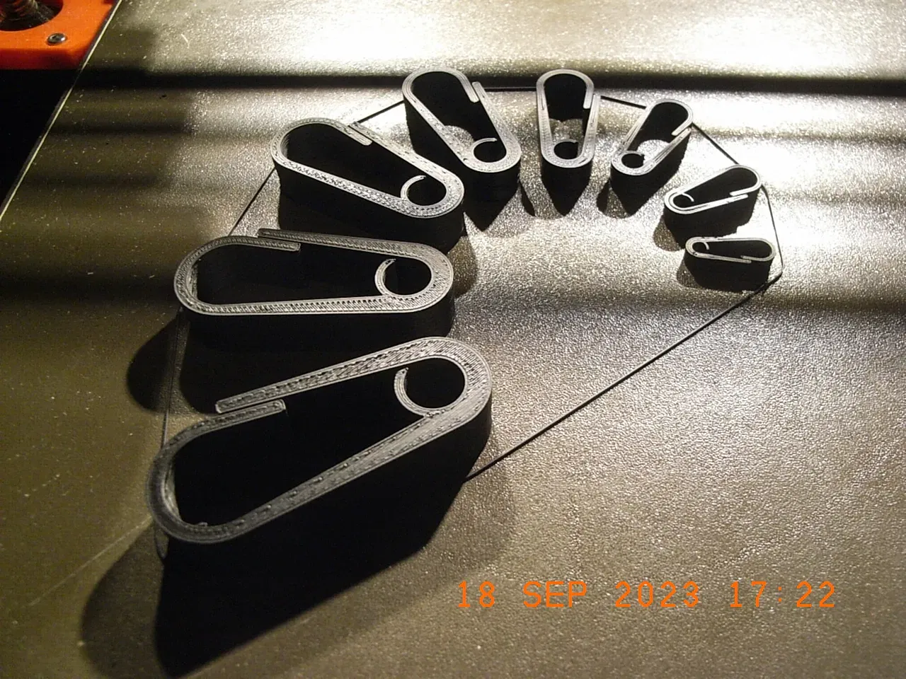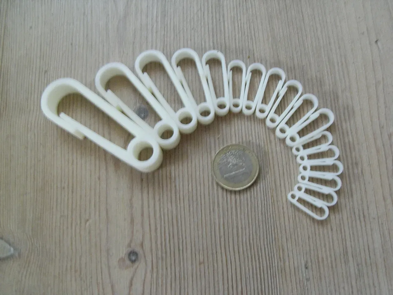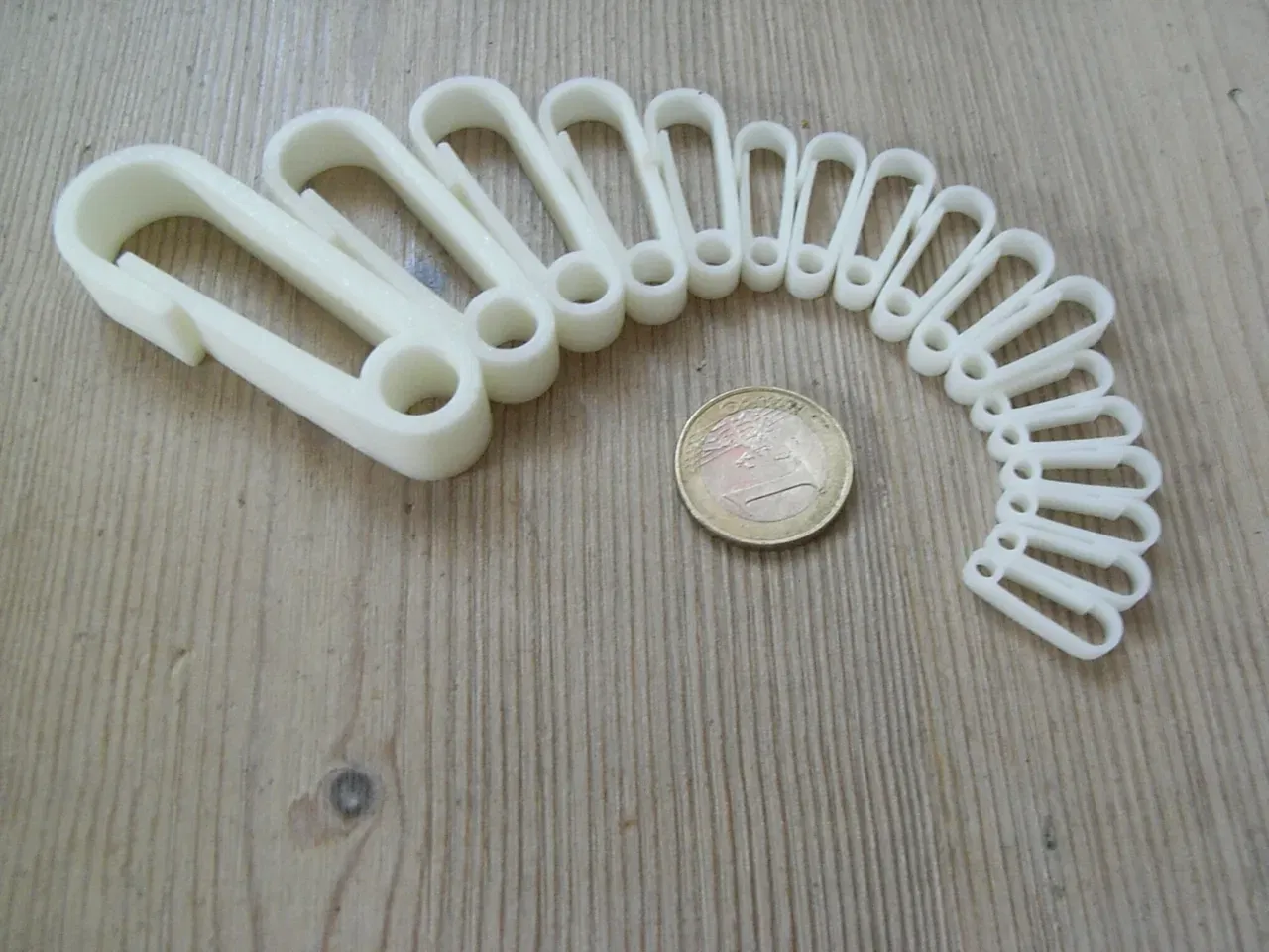 Các clip khóa tham số cho các mục đích khác nhau, các mục tiêu nhỏ cho thanh USB, các clip lớn hơn như carabiners