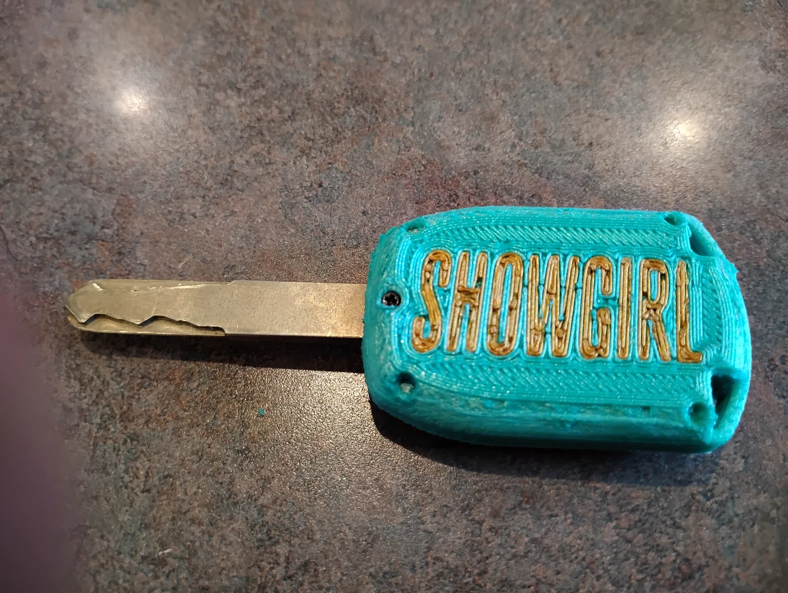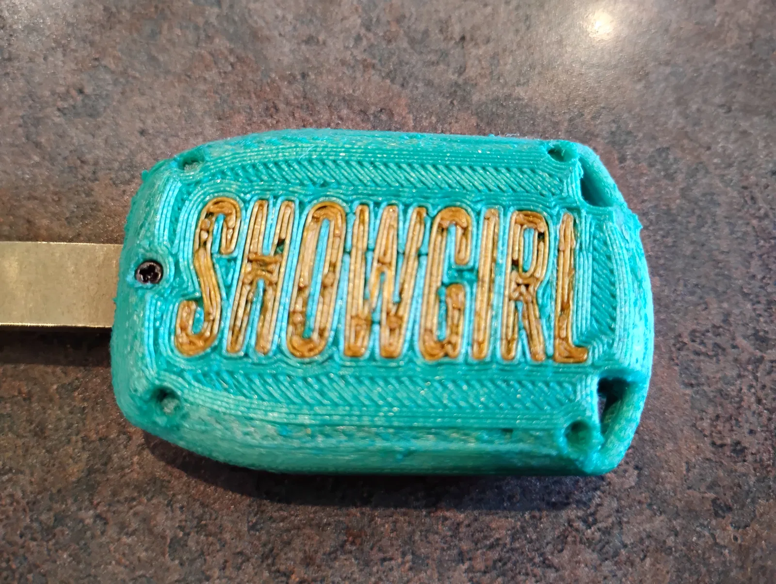 In mặt có nút bấm và mặt sau của chìa khóa mà bạn chọn (với mặt sau, chọn bản trơn hoặc bản showgirl). Gọt tỉa các sợi nhựa thừa hoặc support. Khi chưa lắp chìa, bạn có thể ướm thử để đảm bảo mọi thứ khớp nhau.