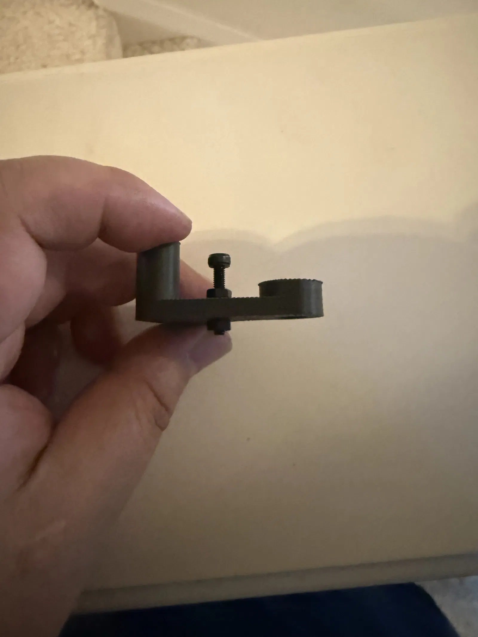 Đây là chi tiết nhựa cho tay nắm cửa trượt bên ngoài ở phía hành khách. Nó nằm dưới tay nắm, chịu lực lò xo và giúp di chuyển cơ cấu chấp hành cửa. Lò xo có tác dụng kéo tay nắm trở lại vị trí ban đầu. Phần đầu ngắn hơn có thể cần dũa nhẹ một chút để khớp với khoảng trống của thanh truyền cơ cấu chấp hành. Mình đã đính kèm file 3mf cho bạn nào muốn chỉnh sửa thiết kế lại để không cần dùng đệm cho thanh truyền. Mình đã in chi tiết này bằng nhựa ASA với 100% infill và 5 đường tường (wall lines).