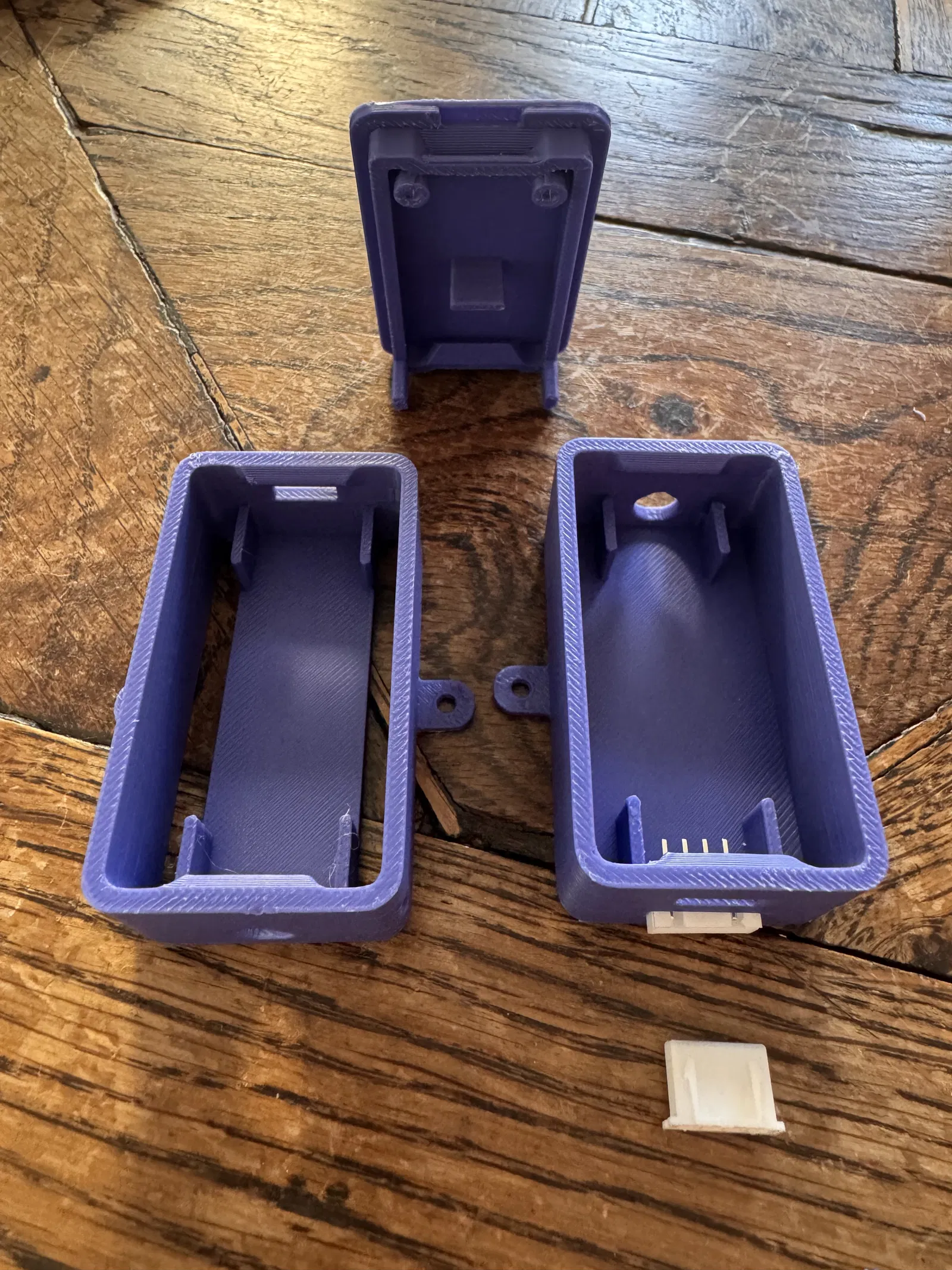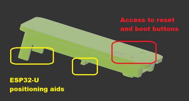 Phần nắp được thiết kế để bạn có thể nhấn trực tiếp vào hai nút trên ESP (với các lỗ nhỏ bằng kích thước cây tăm), đồng thời các gờ định vị giúp giữ cố định ESP chắc chắn ở bên trong.