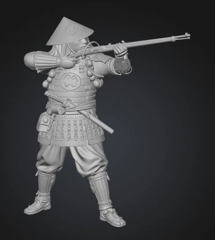 Mô hình Samurai thời Sengoku cầm súng hỏa mai in 3D
