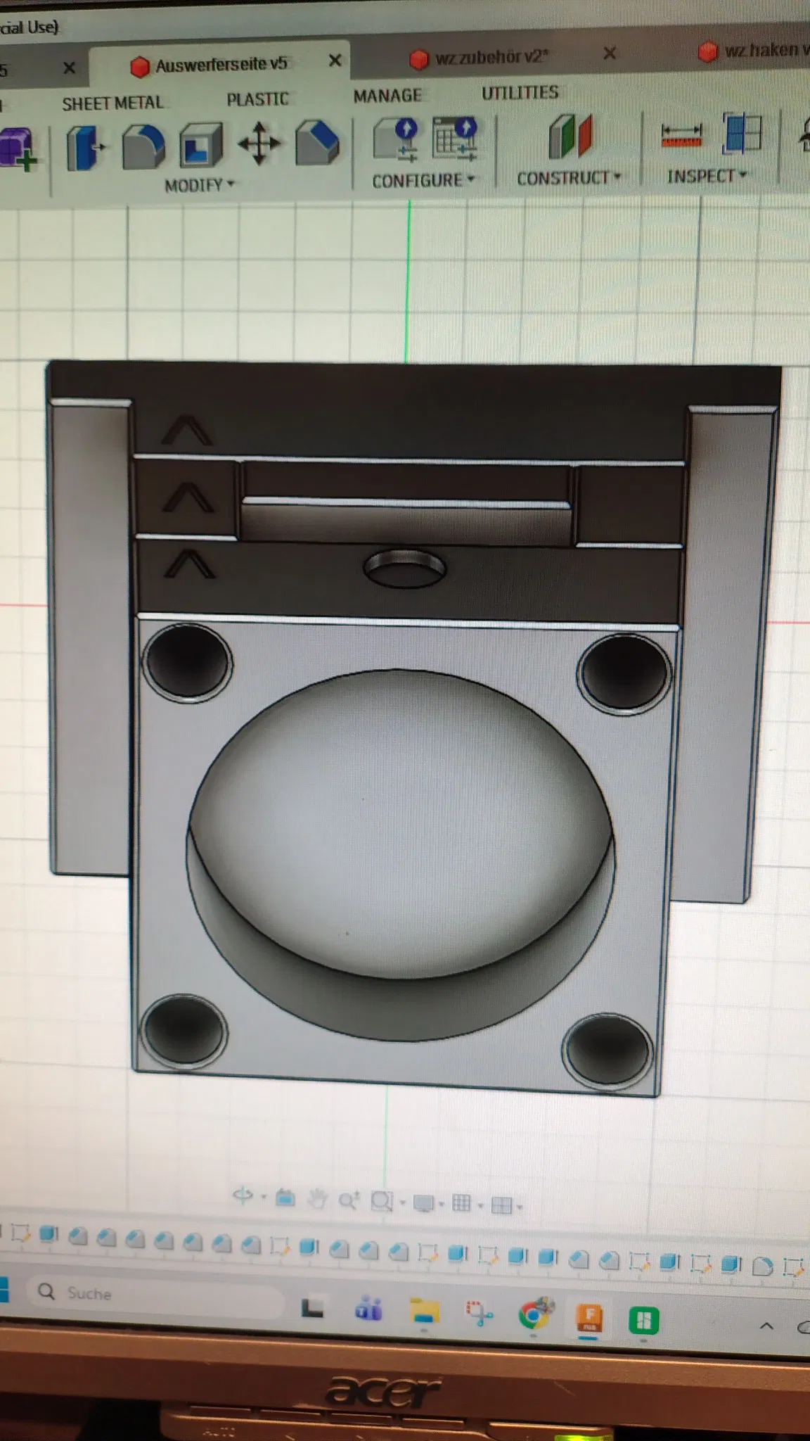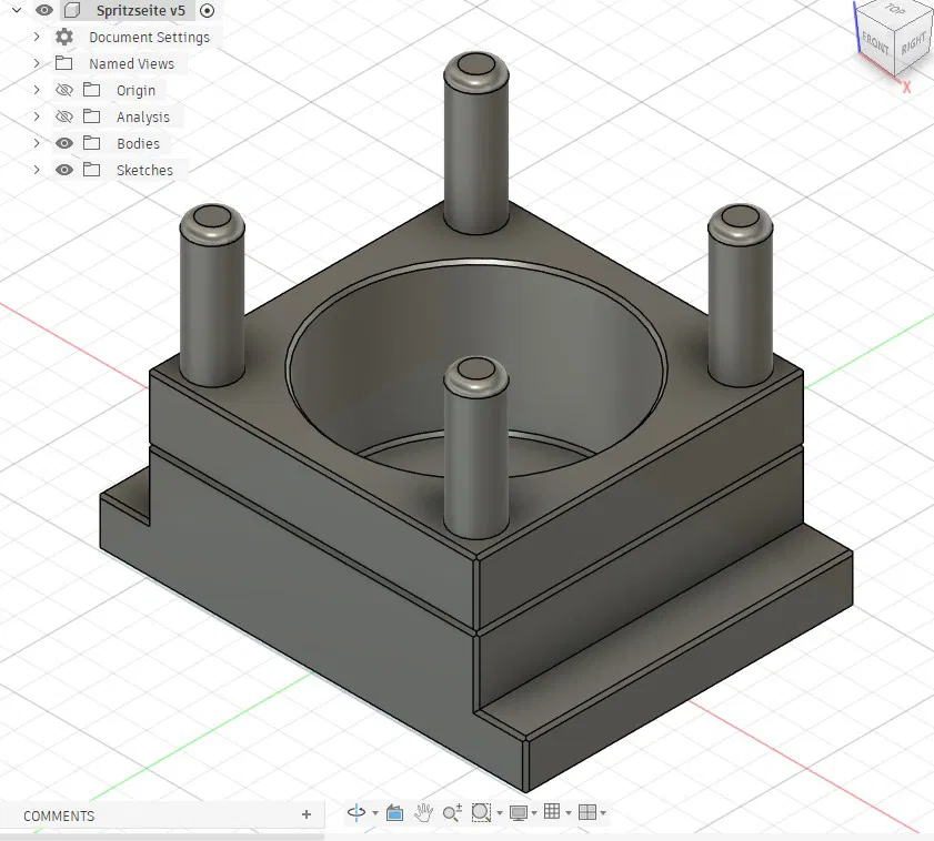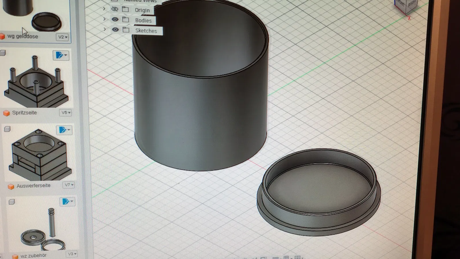 Mình tạo ra mẫu khuôn này để làm quà tặng cho một người bạn làm nghề kỹ thuật khuôn mẫu (toolmaker). Mẫu này bao gồm các bộ phận sau: phần khuôn 1 phần khuôn 2 hai vòng đệm thanh đẩy (ejector) móc treo (hook eye) hộp đựng tiền với nắp đậy