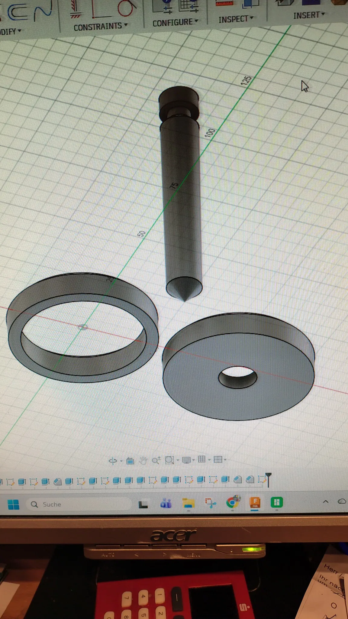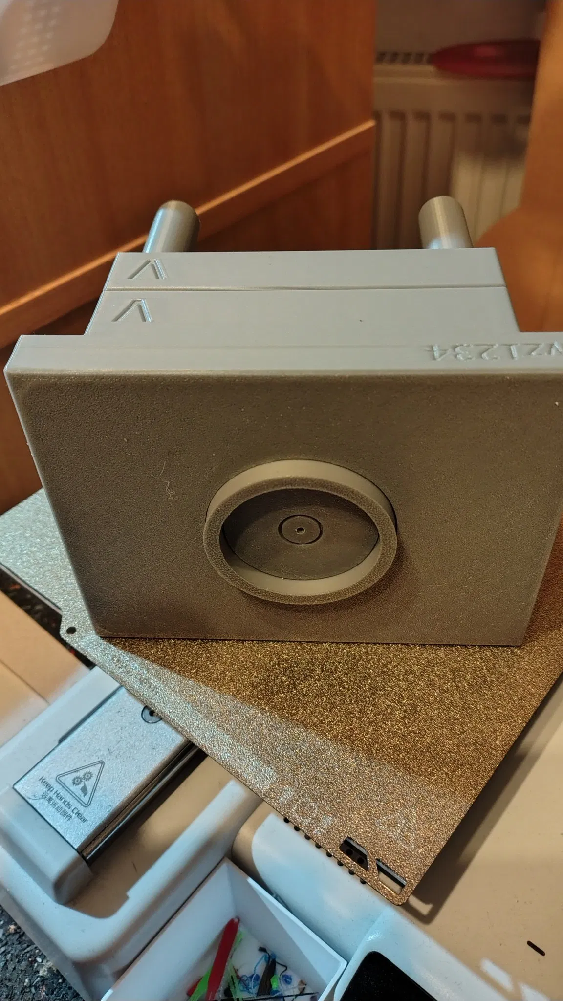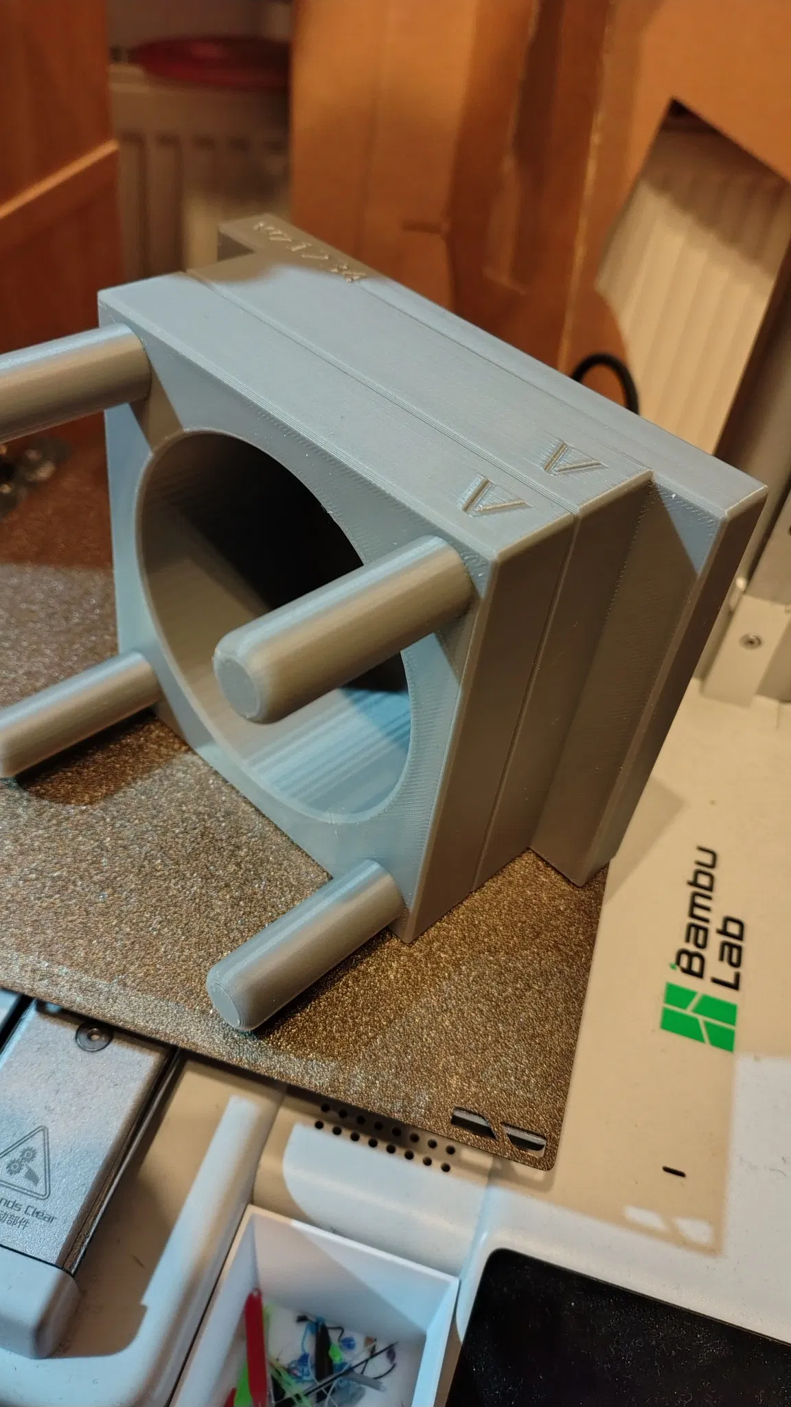 Hai vòng đệm, thanh đẩy và móc treo cần được dán keo lại với nhau. Đây là cách duy nhất để mình thiết kế mà không cần dùng đến support.