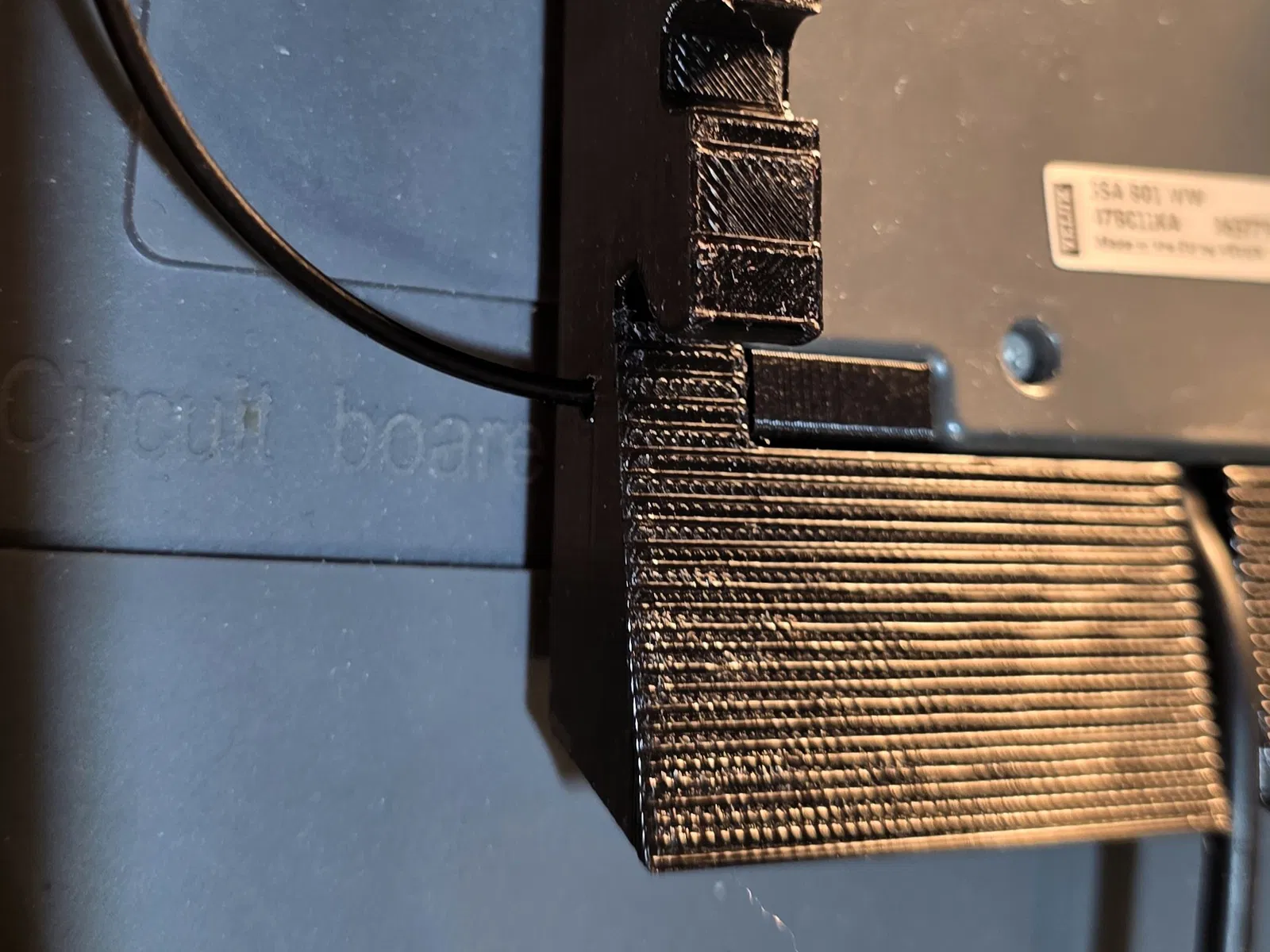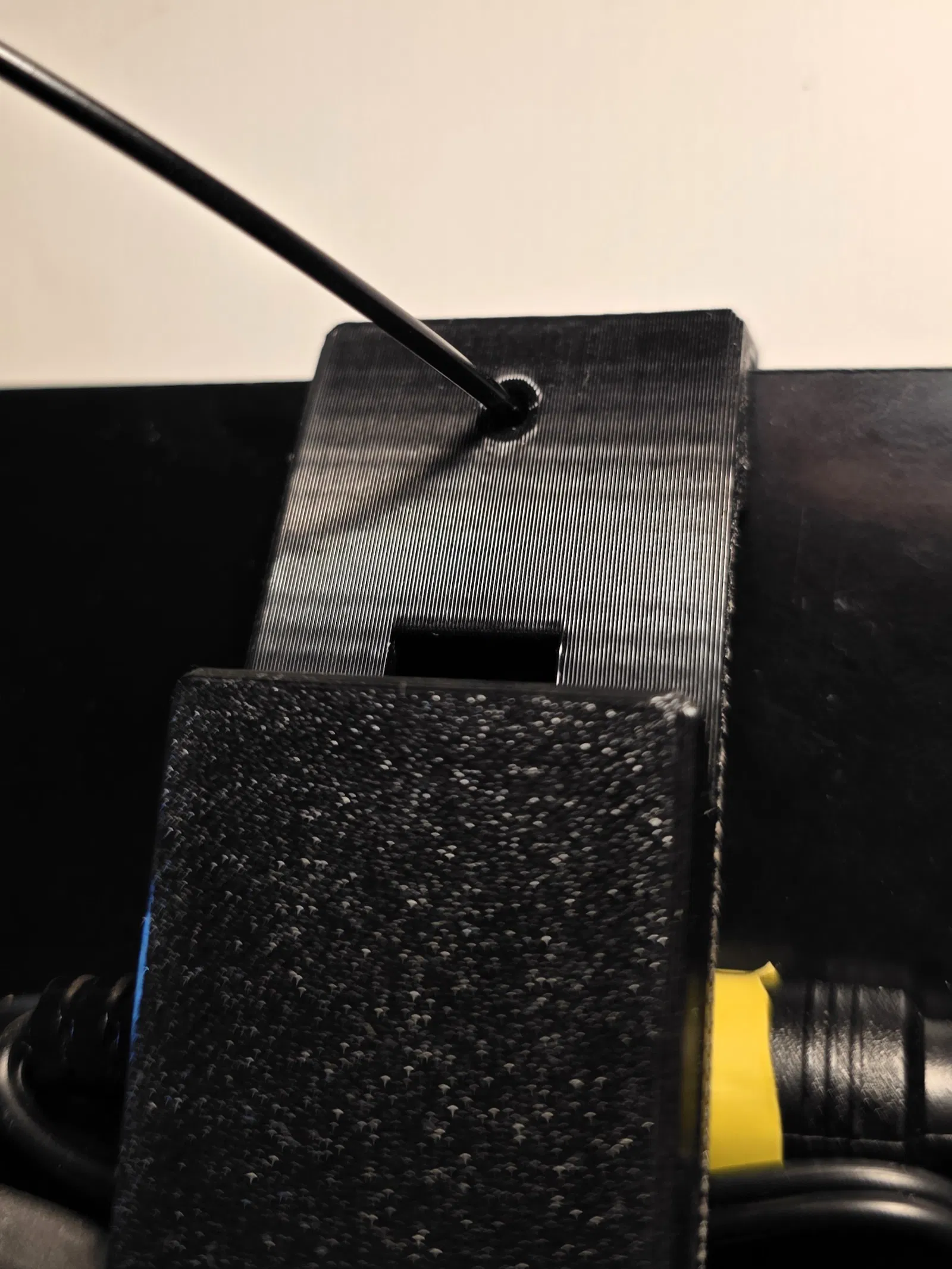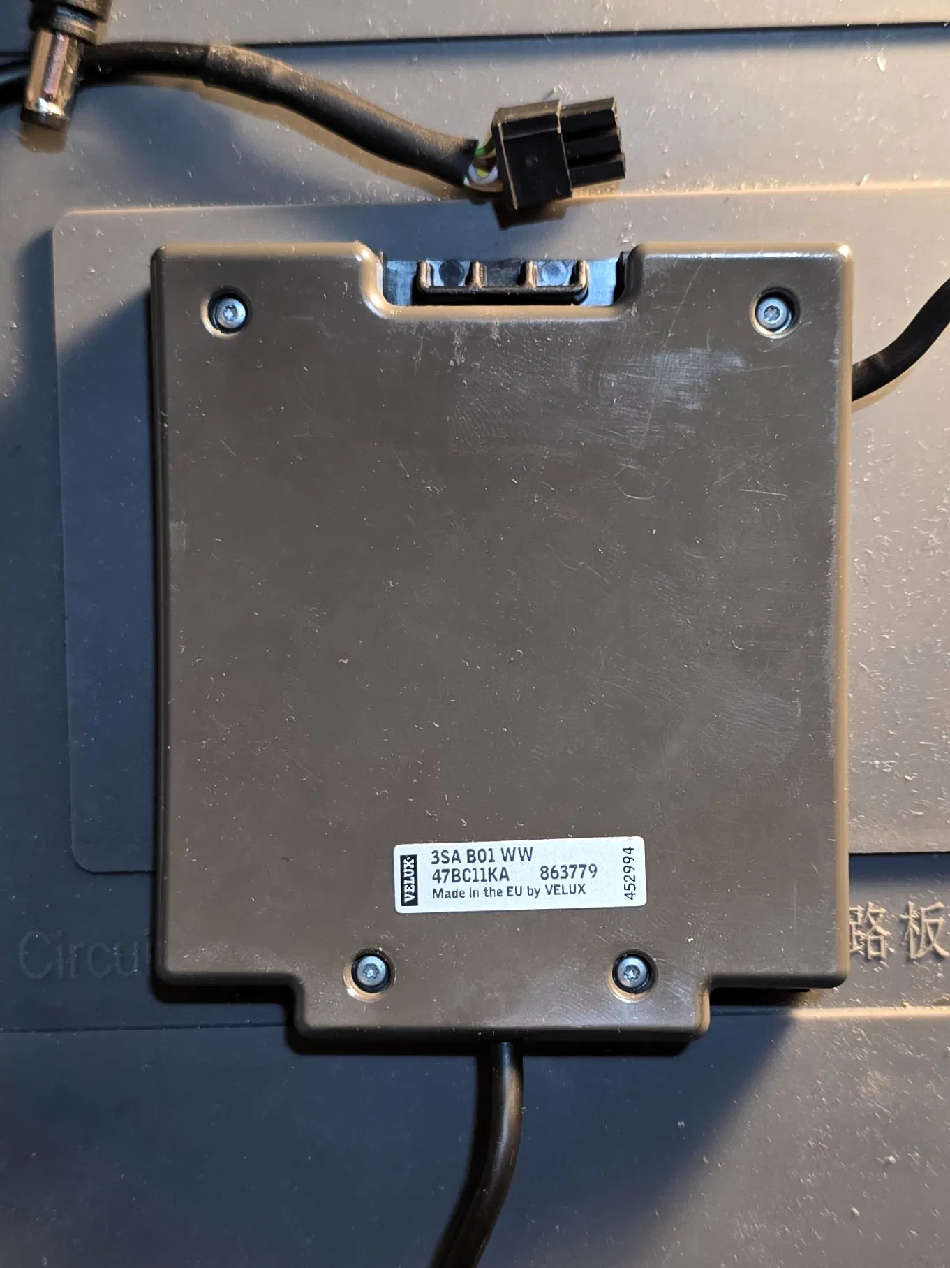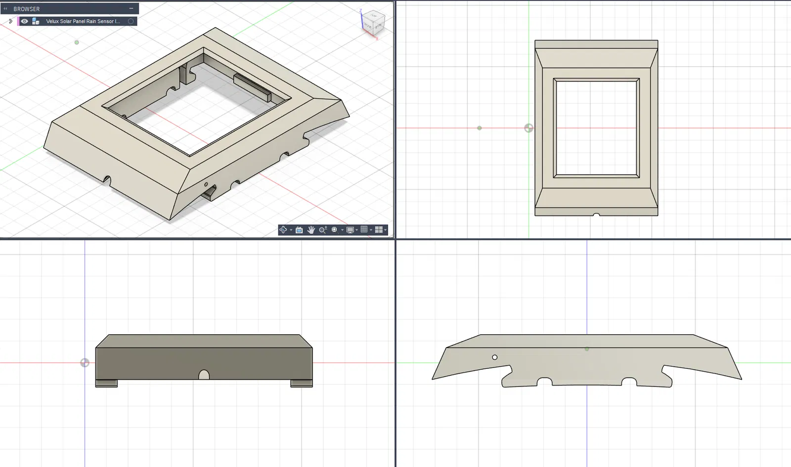 Vì cần tháo bỏ giá đỡ cũ – nơi chứa cảm biến mưa (3SA B01 WW) của cửa sổ Velux – nên mình cũng đã thiết kế một giá đỡ mới cho cảm biến này, có tích hợp sẵn đường đi dây cáp. Cảm biến chỉ cần kẹp từ dưới lên và khóa lại bằng hai chốt. Bạn dùng các đoạn nhựa in (filament) ngắn xuyên qua lớp vỏ ngoài để cố định chốt. Việc giữ lại cảm biến mưa không chỉ đảm bảo tính năng tự động đóng cửa khi trời mưa mà còn giúp duy trì logic kết nối ban đầu một cách mượt mà.