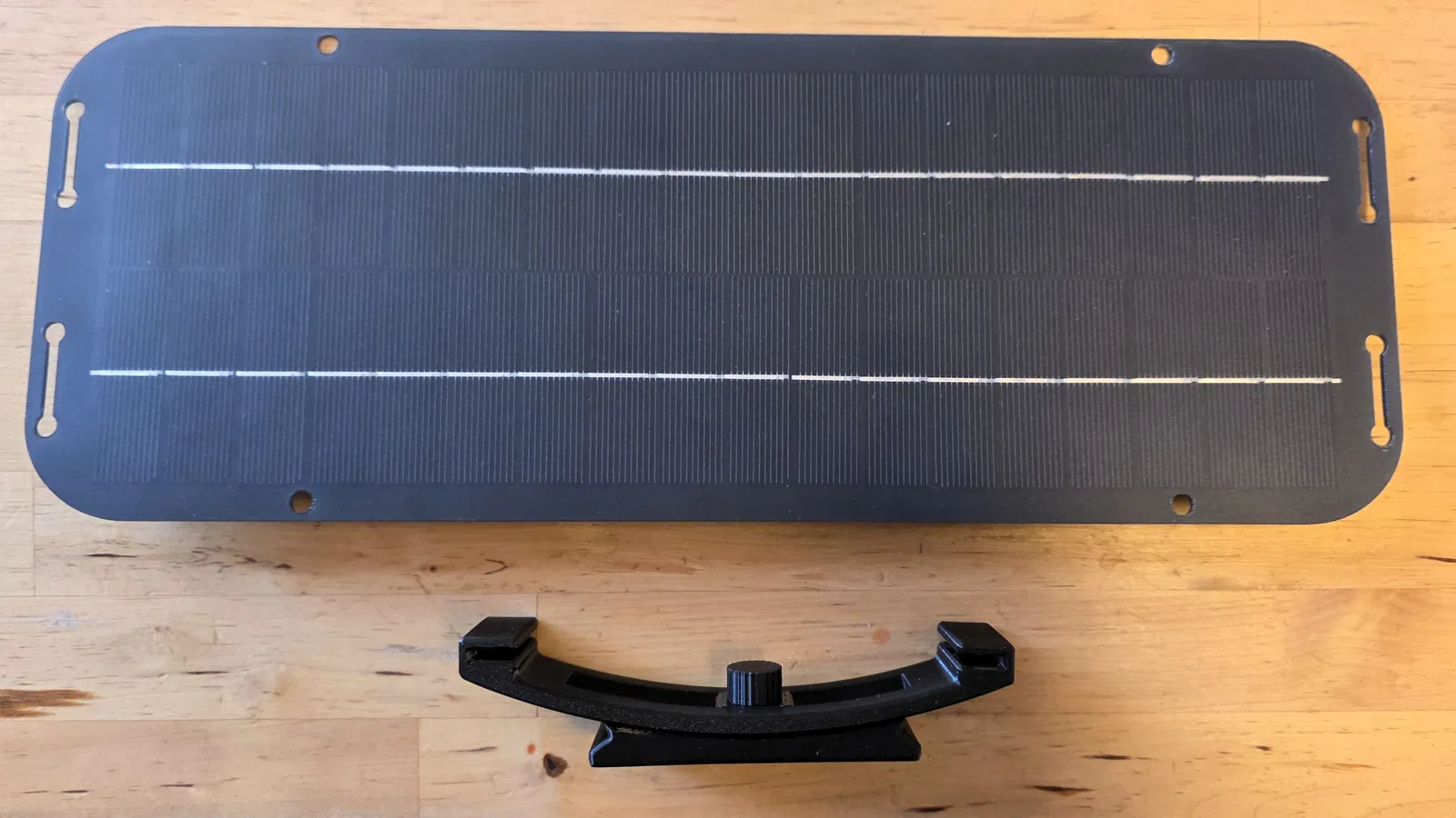 Các tấm pin mặt trời được đẩy vào giá đỡ và cố định từ dưới lên qua các lỗ bằng sợi filament hoặc vít nhỏ. Trước khi lắp đặt, bạn nên tính toán góc độ tối ưu, đặc biệt là vào những mùa ít nắng. Sau khi đã lắp hoàn thiện, việc điều chỉnh góc độ chỉ có thể thực hiện với cờ lê 13mm ngắn và cần có khoảng trống giữa các tấm pin.