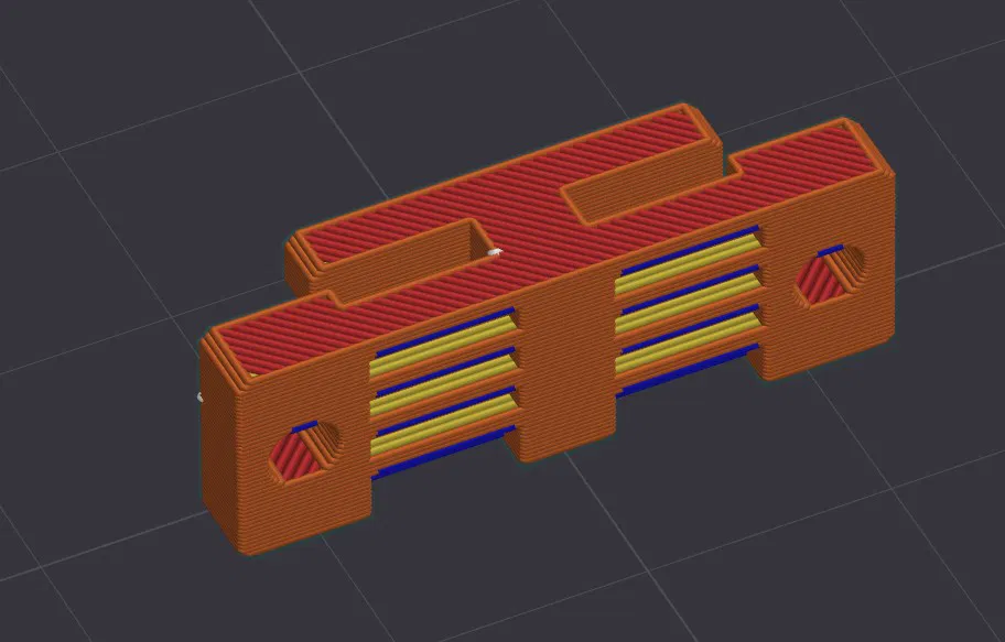 Kẹp dây đai (belt clamp) cho Creality K1. Mình đã gia cố thêm nhiều vật liệu nhất có thể để linh kiện nhỏ này đạt độ cứng tối đa. Mọi người lưu ý đừng in bằng nhựa PA, PETG, PP, PPS, ABS, ASA hay PC nhé, ngay cả khi có pha sợi carbon (CF) hay sợi thủy tinh (GF) thì chúng vẫn không đủ cứng và sẽ bị biến dạng. Ủ nhiệt (annealing) có thể giúp ích phần nào nhưng không đáng kể. Mình khuyến khích sử dụng HTPLA-CF hoặc PPA-CF kết hợp ủ nhiệt. Thiết lập in: chiều cao lớp in 0.15mm, 3 đường bao (perimeters), 100% infill, không cần support. Lỗ bắt vít có kích thước 2.8mm, hơi nhỏ hơn chuẩn nên bạn cần khoan lại bằng mũi khoan 3mm nhé.