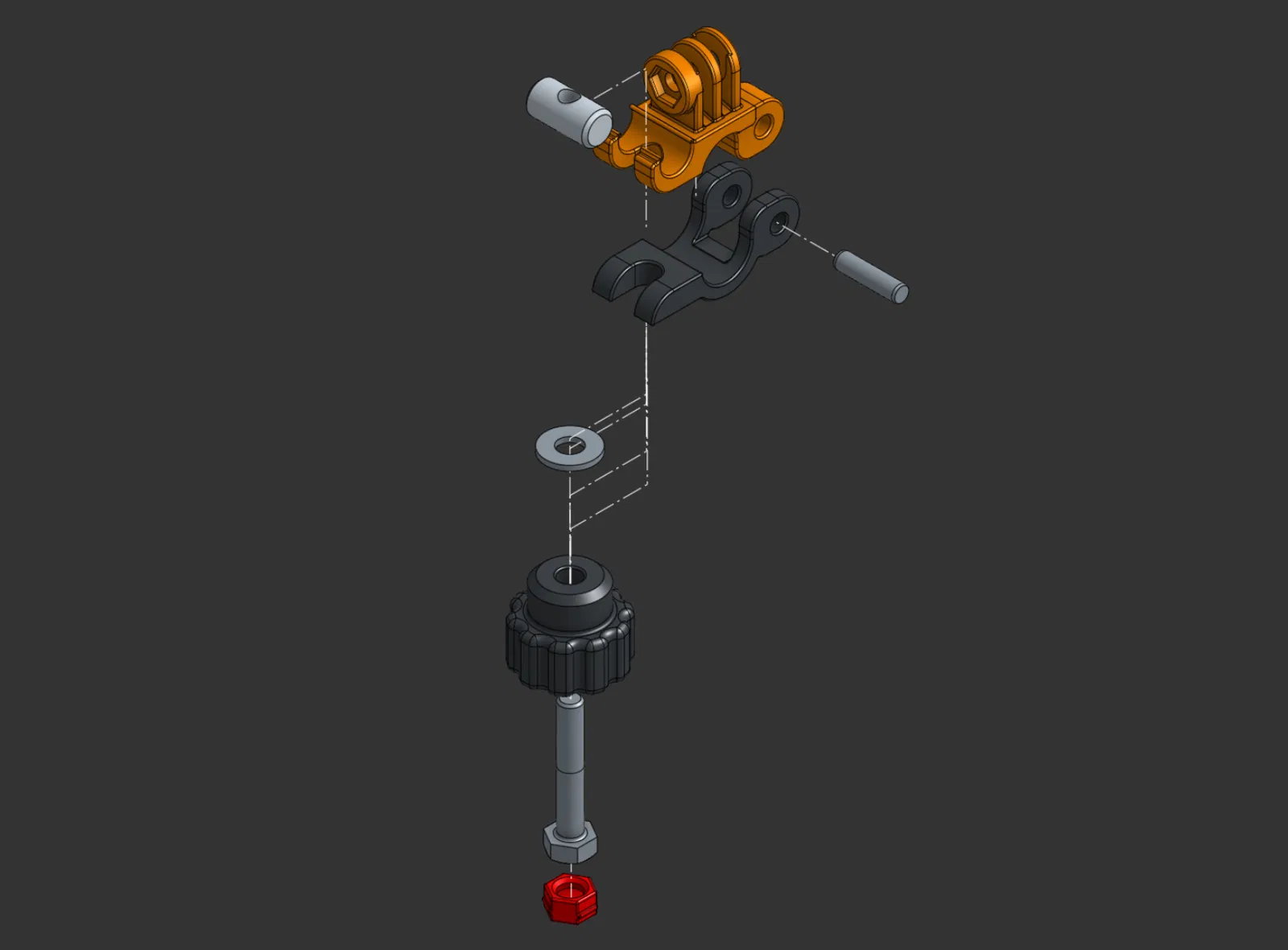 Kẹp này được thiết kế để gắn các thành phần của Hệ thống Gá lắp Mô-đun (Modular Mounting System - MMS) lên ống, thanh hoặc trụ có đường kính 16mm. Nếu bạn cần kích thước khác, bạn có thể sử dụng tài liệu OnShape được liên kết bên dưới làm điểm khởi đầu để tự tạo. Đây là phiên bản nhỏ gọn hơn của mẫu của mình. Kẹp này sử dụng các tab MMS lực siết cao, vì chúng hoàn toàn tương thích ngược với các tab gốc. Từ nay về sau, tất cả các thành phần MMS của mình sẽ sử dụng các loại tab này. Chốt bản lề được thiết kế cho chốt thép M5 x 20mm, loại này rất dễ tìm trên Amazon, hoặc bạn có thể dùng bu-lông M5-0.80 x 40mm kèm đai ốc khóa nylon. Phần cứng kẹp sử dụng bu-lông M6 kèm vòng đệm và đai ốc chốt ngang (cross dowel nut), cũng có sẵn trên Amazon. Tài liệu OnShape còn bao gồm cấu hình cho phần cứng 1/4-20 có bán tại Home Depot. Mình cũng đã bao gồm một núm vặn tương thích để thuận tiện hơn khi sử dụng. Tương thích với GoPro. Mô hình OnShape có thể tùy chỉnh: Quick-Release Tube Clamp - Compact Version. Xem thêm của mình để tự tạo núm vặn cho dự án này và nhiều dự án khác nhé!