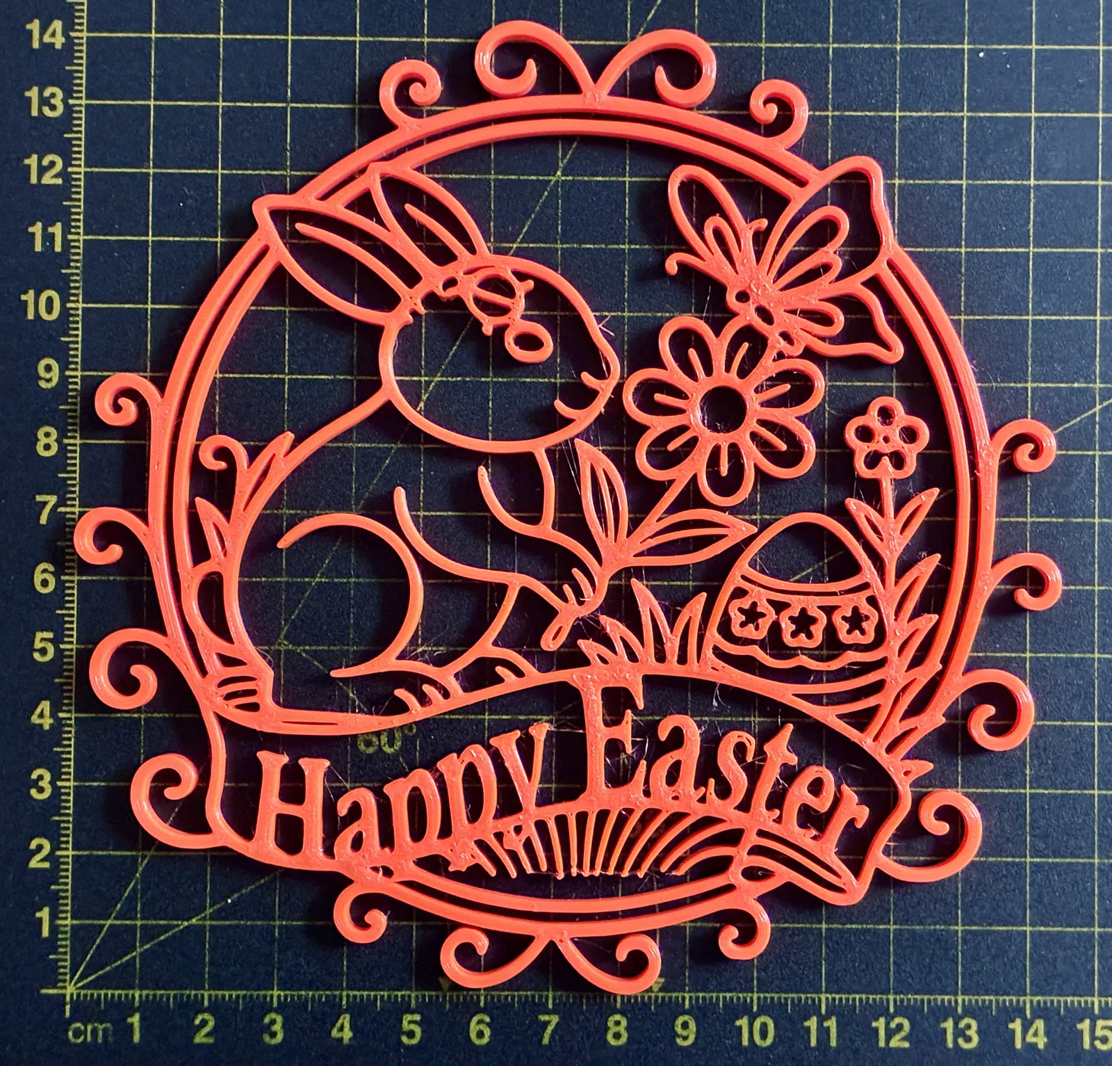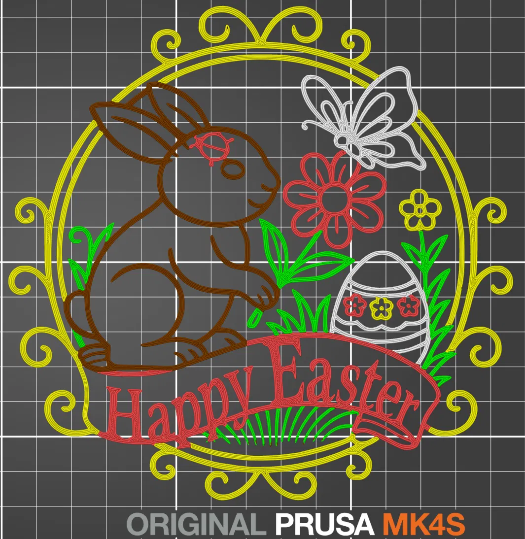 Mẫu trang trí "Happy Easter" đa năng cho mùa Phục sinh. Bạn có thể dùng làm vật treo cửa sổ, trang trí tường, lót ly hoặc trang trí bàn tiệc. Mẫu in dễ dàng, không cần support, mang lại không khí vui tươi cho ngôi nhà của bạn.