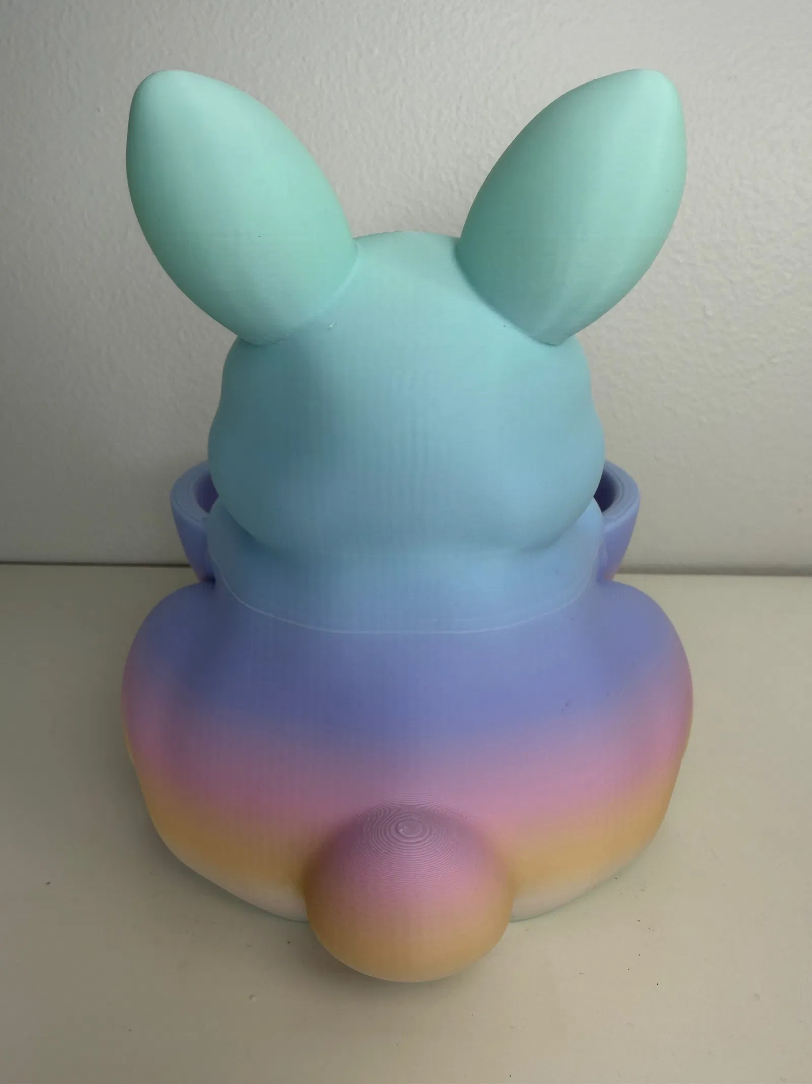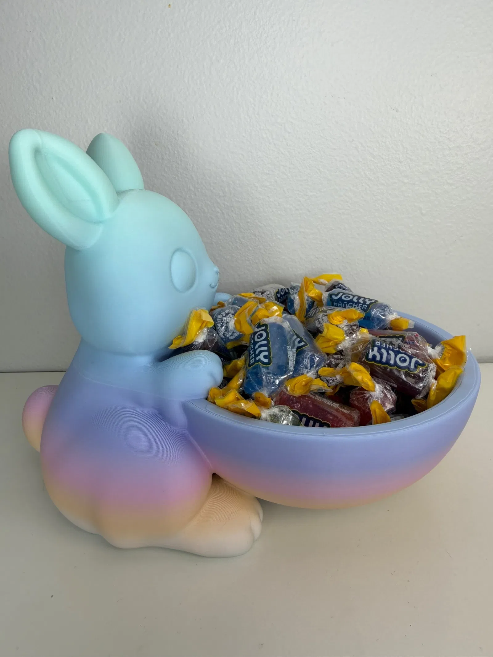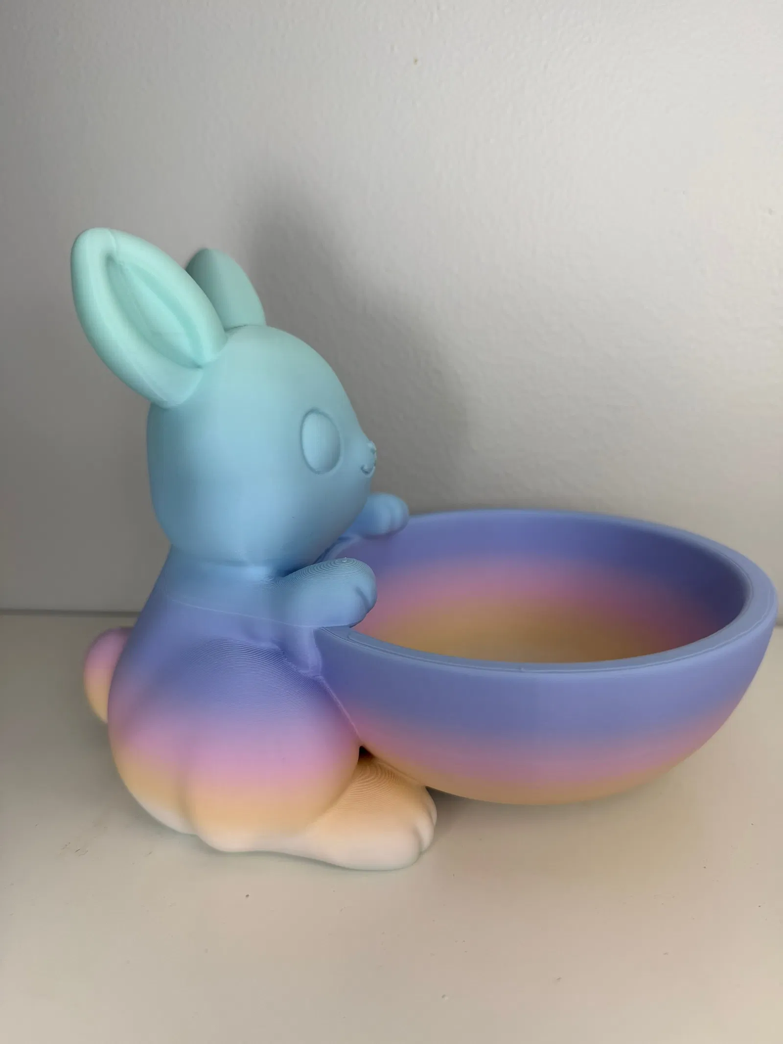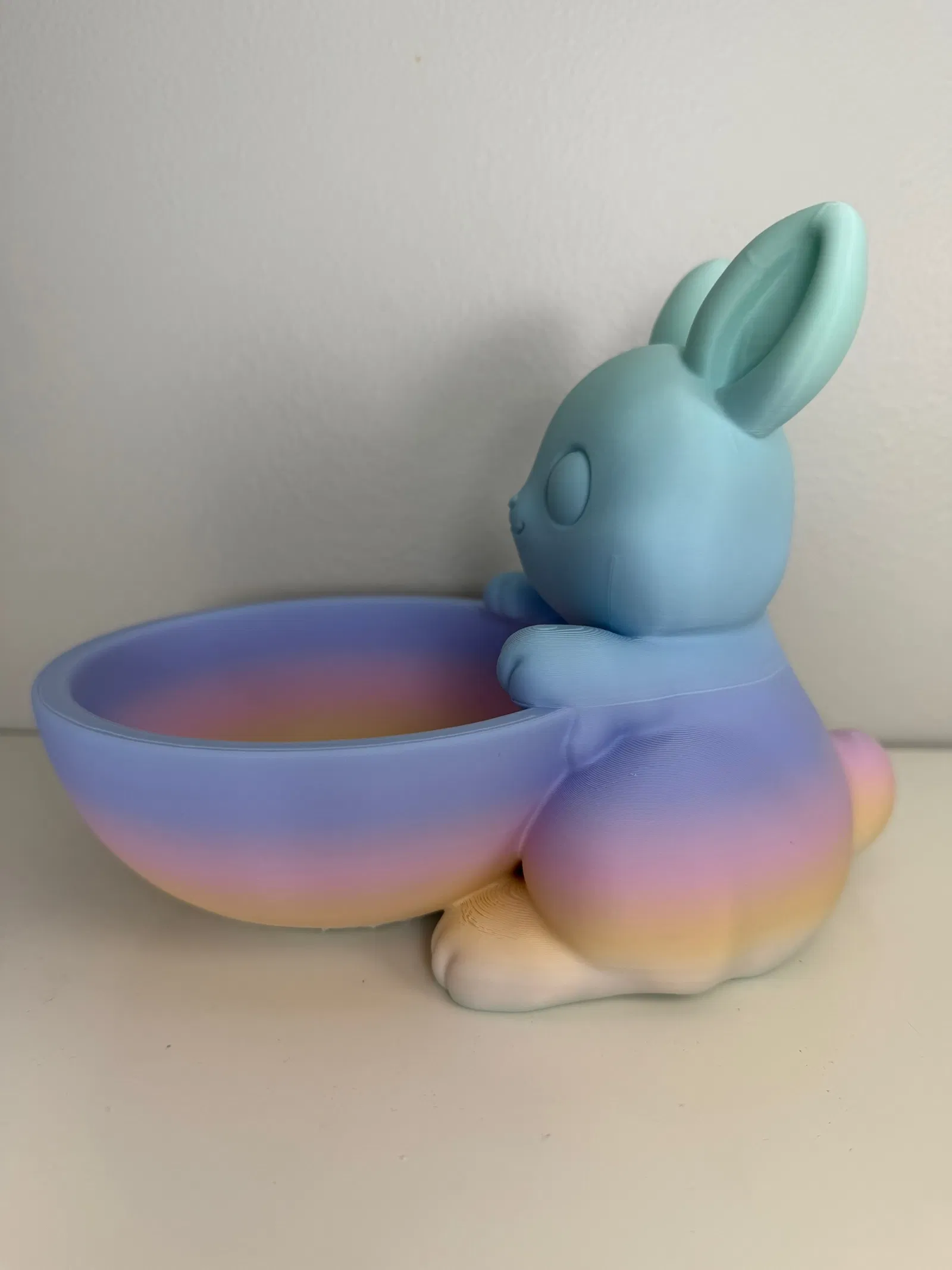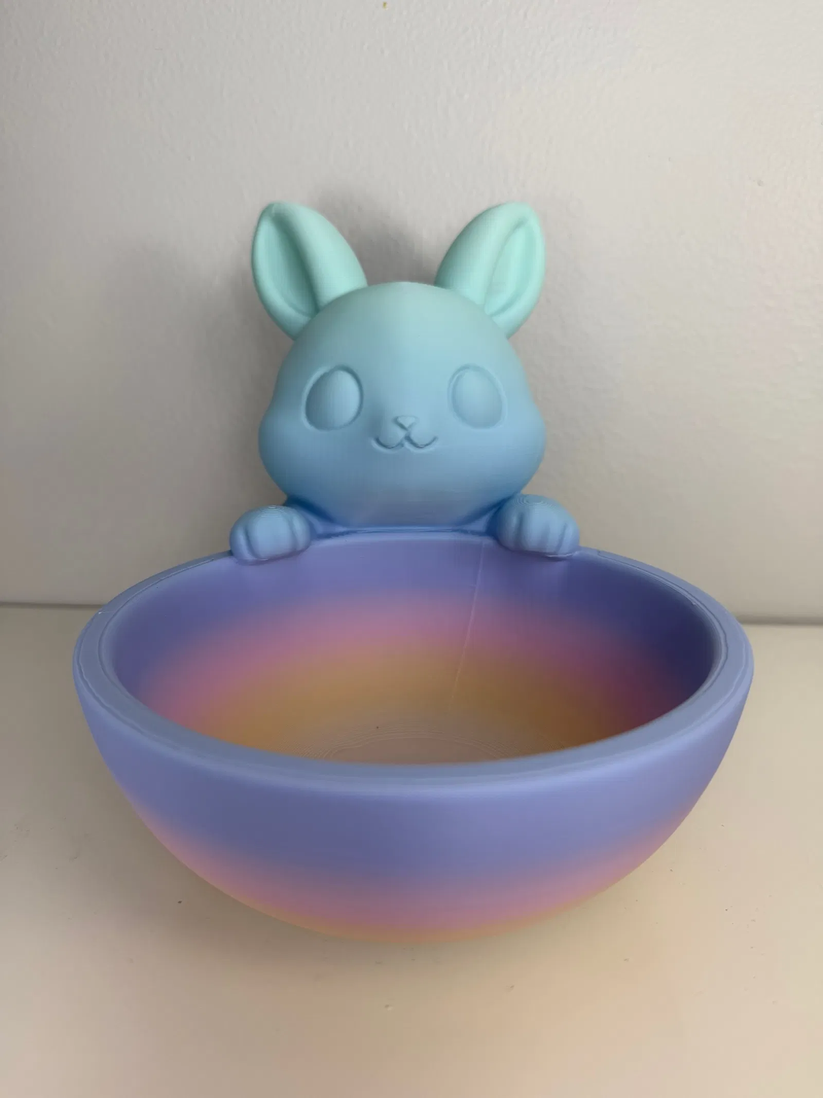 Chú thỏ nhỏ dùng hai chân ôm lấy cái bát một cách nhẹ nhàng, tạo nên một thiết kế vô cùng dễ thương và tinh nghịch. Mẫu này sẽ trông rất tuyệt vời khi bạn sử dụng các loại nhựa filament có màu sắc rực rỡ đấy.