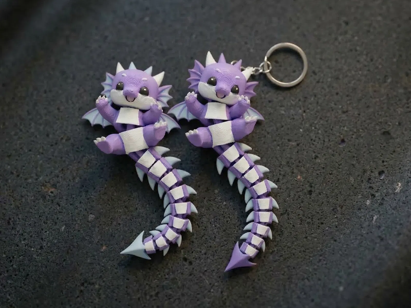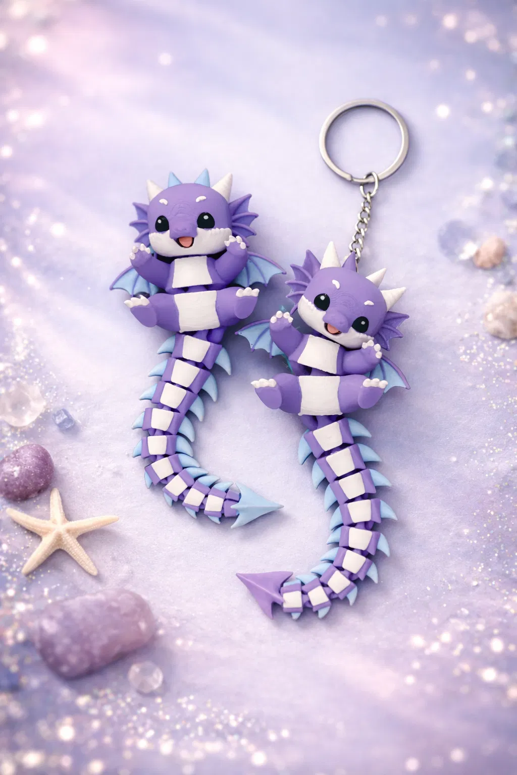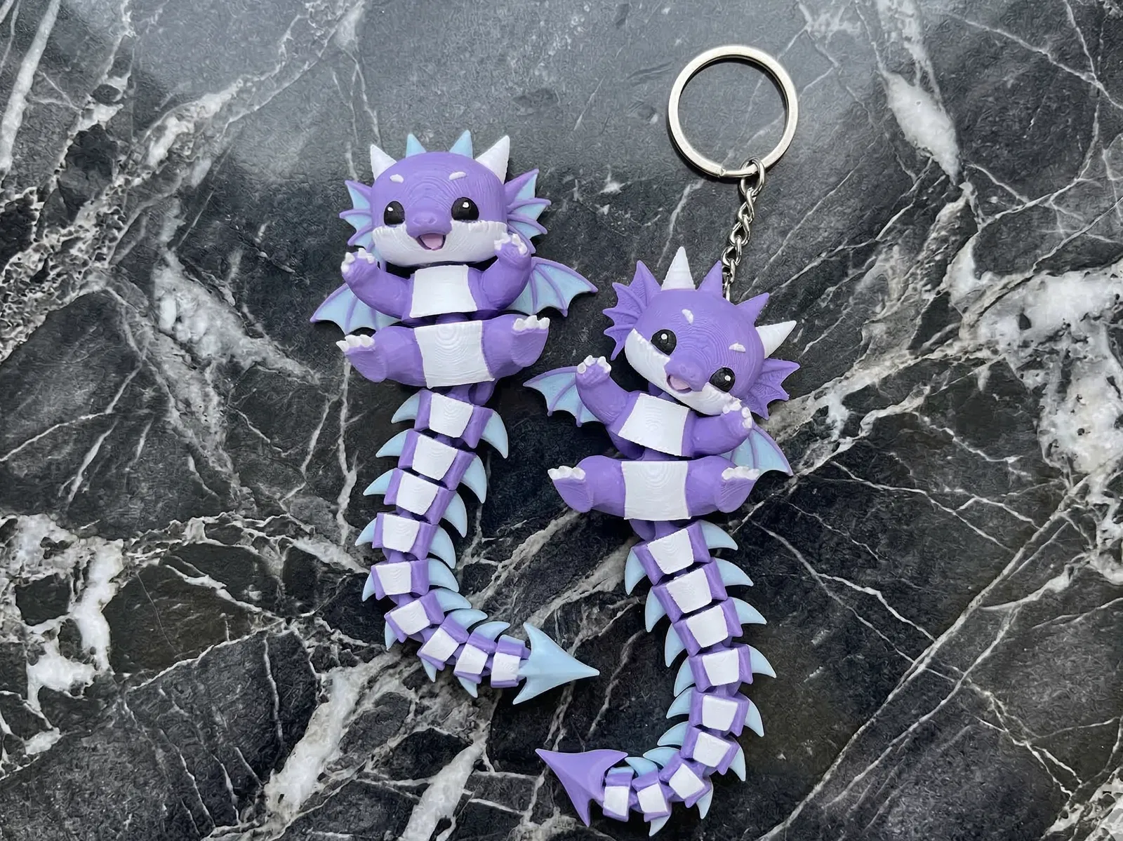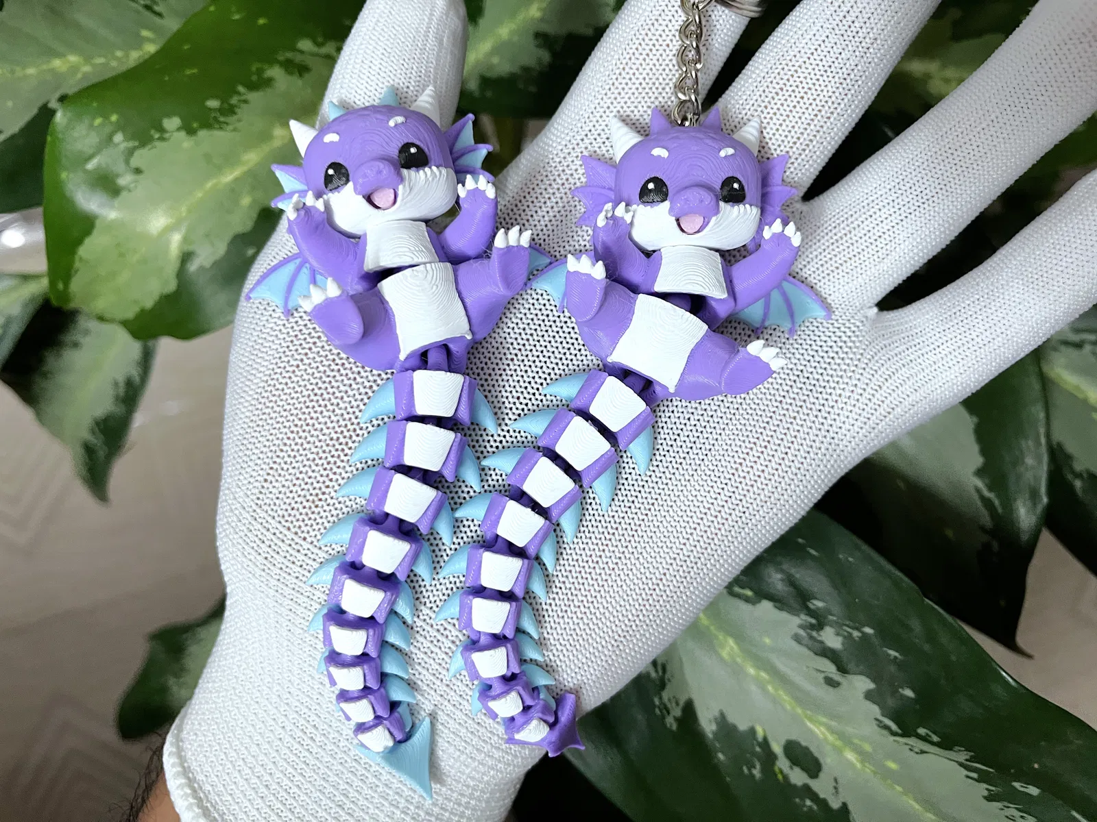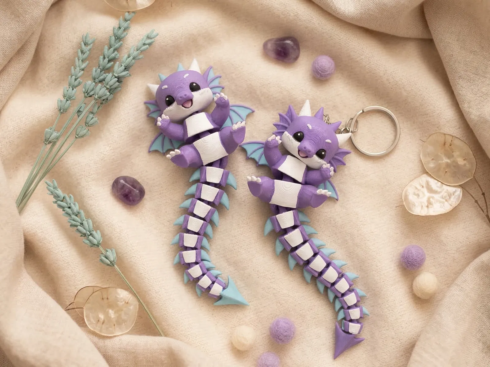 Thiết kế bao gồm: • 🐉 Một chú rồng đáng yêu với đôi cánh và cặp sừng nhỏ xíu • 🔗 Thân rồng flexi khớp nối linh hoạt, in nguyên khối (print-in-place) • 🔑 Có phiên bản móc khóa để bạn có thể mang chú rồng của mình đi khắp nơi • 🎨 Rất tuyệt để in đa màu nếu bạn muốn tạo lại diện mạo tím/xanh hoặc thử nghiệm với các sự kết hợp màu sắc của riêng mình
