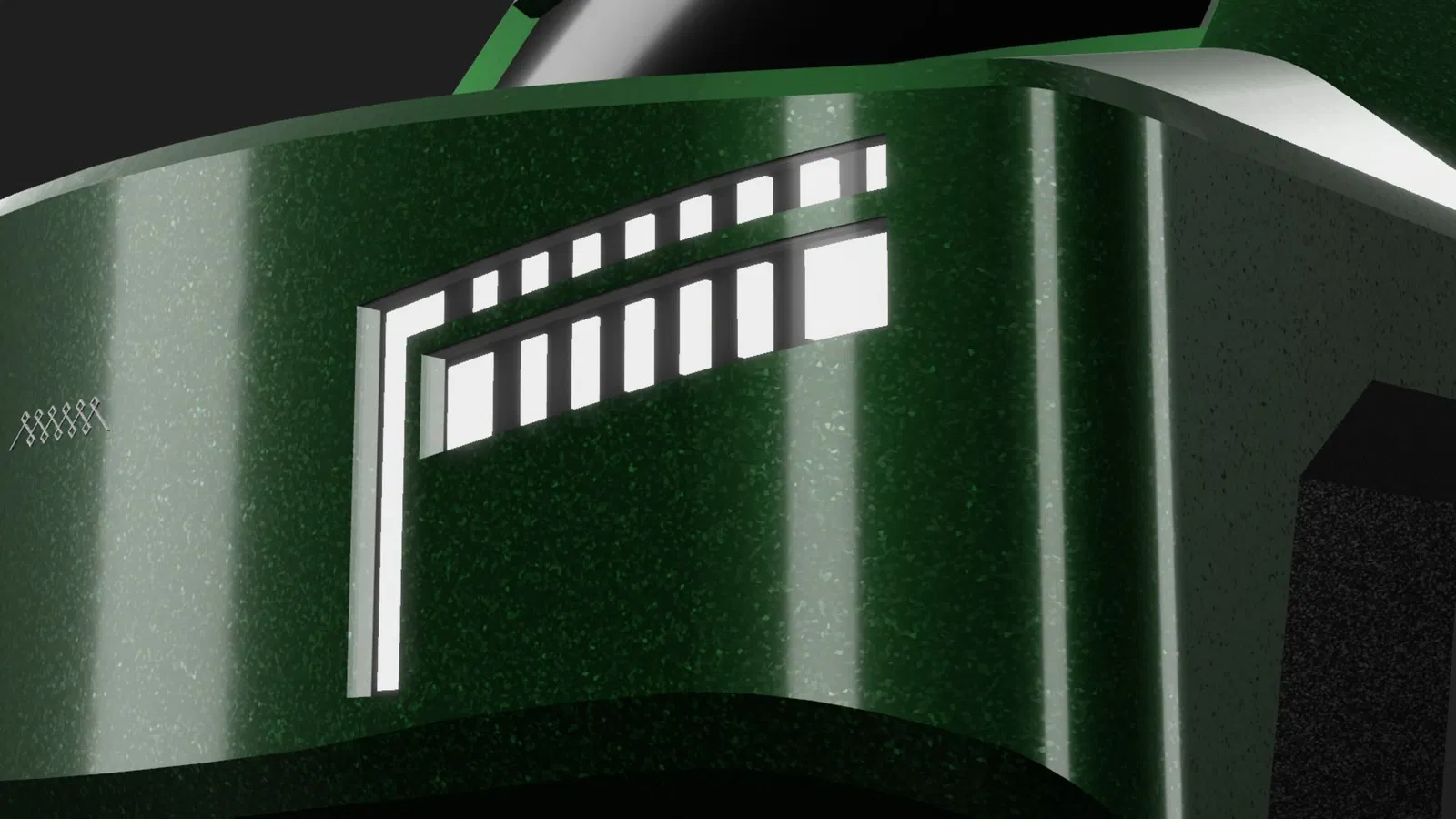 Phong cách Hard-surface: Các tấm ốp phẳng phiu, hốc bánh xe được điêu khắc tinh xảo và các chi tiết trang trí tinh tế, tối ưu cho việc hiển thị rõ nét trong các phần mềm dựng hình/thời gian thực.