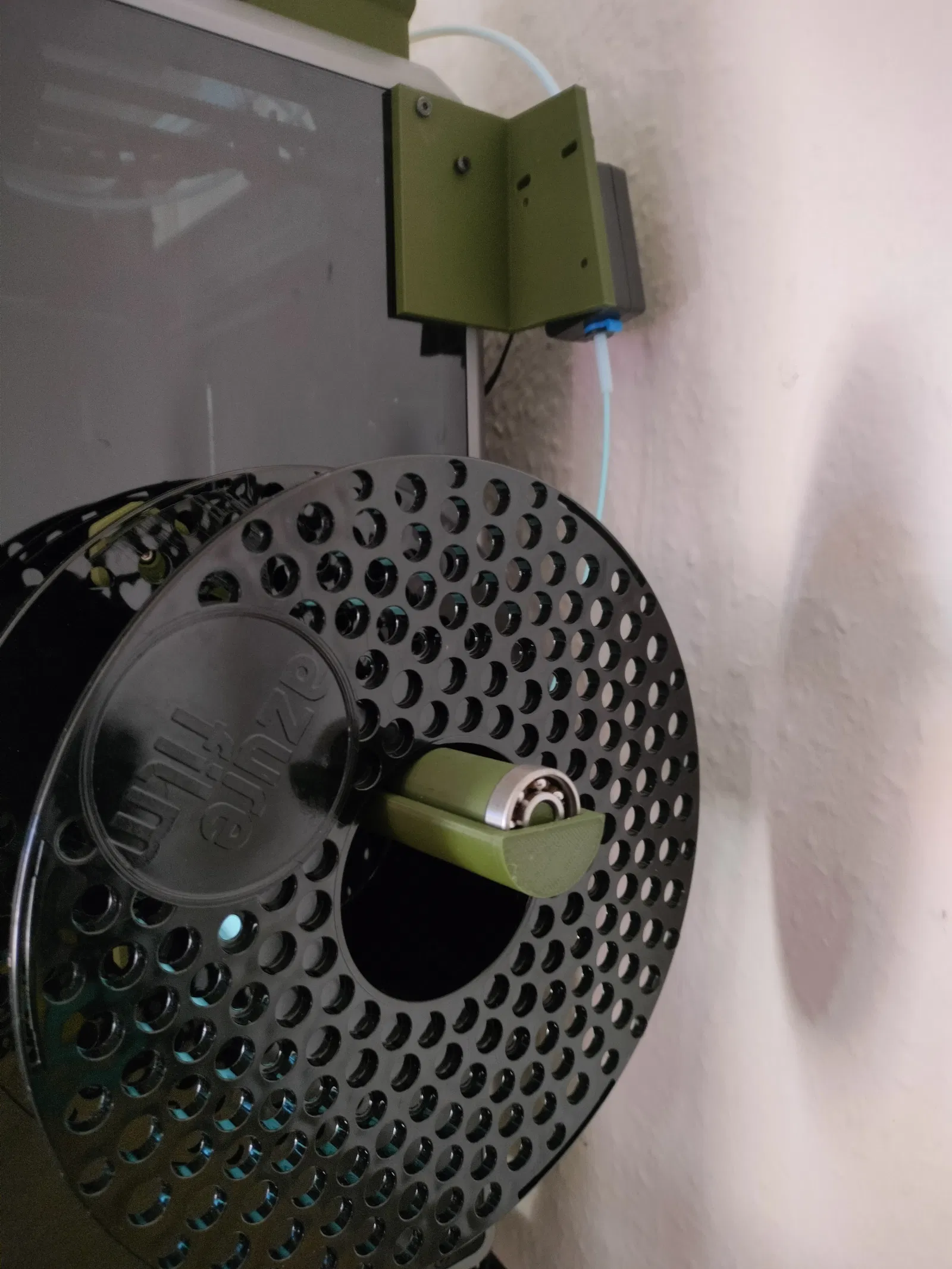 Thiết kế này được làm nghiêng một góc sao cho đường đi của sợi nhựa hướng thẳng về phía giữa cuộn filament. Điều này giúp giảm bớt lực cản khi kéo nhựa, tạo ra đường đi thẳng mượt mà hơn và hạn chế tối đa các đoạn ống Bowden bị uốn cong không cần thiết. Đáng lẽ ra file này nên được nhà sản xuất đính kèm sẵn trong USB khi mua máy.