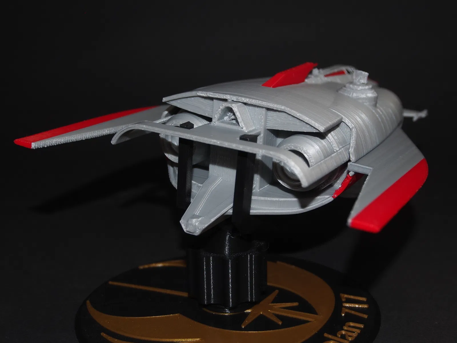 Mô hình tàu con thoi Polan 717 của Jedi Master Sol từ phim Star Wars: The Acolyte. Tỉ lệ 1:270 với các chi tiết có thể di chuyển, bao gồm chân đế và khoang chứa tàu thoát hiểm.