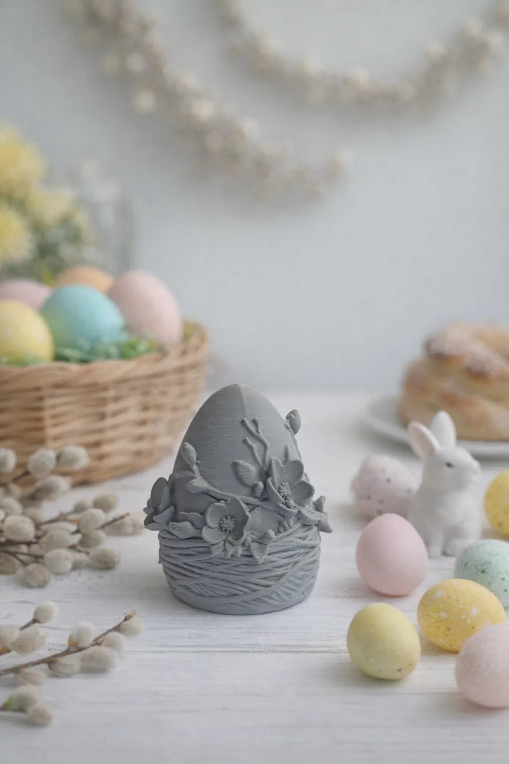 Mẫu Easter Egg này mang phong cách thiết kế hiện đại pha chút cổ điển, rất thích hợp để làm quà tặng hoặc trang trí trong các sự kiện gia đình. Nhờ sự kết hợp giữa hình dáng quả trứng truyền thống và các chi tiết chạm khắc hoa cỏ nổi, sản phẩm sau khi in ra trông rất có chiều sâu. Bạn có thể đặt nó cạnh giỏ trứng màu sắc truyền thống hoặc các mô hình chú thỏ để tạo nên một không gian lễ hội đậm chất mùa xuân, ấm cúng và đầy màu sắc tươi mới.
