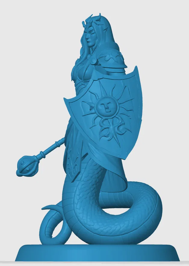 Chào các anh em đam mê in 3D và game nhập vai tabletop! Hôm nay mình xin giới thiệu đến các bạn một mô hình nhân vật cực kỳ ấn tượng, đó là Yuan-ti Cleric. Đây là thiết kế được lấy cảm hứng từ các sinh vật huyền bí trong thế giới D&D, mang vẻ ngoài vừa quyền uy vừa có phần bí ẩn, rất phù hợp để làm nhân vật chính hoặc phản diện trong các chiến dịch RPG của anh em. Với tạo hình kết hợp giữa phần thân người phía trên và phần đuôi rắn phía dưới, cùng với vũ khí là chùy và khiên chắn có họa tiết mặt trời độc đáo, mô hình này hứa hẹn sẽ là điểm nhấn nổi bật trên bàn chơi.