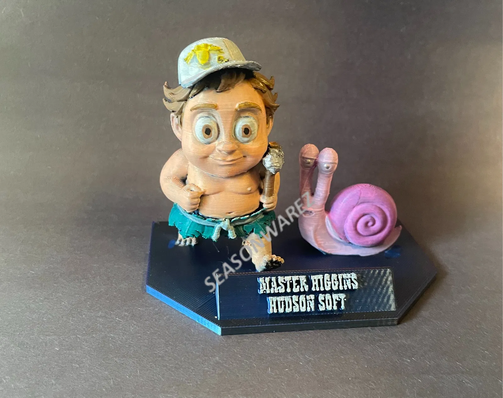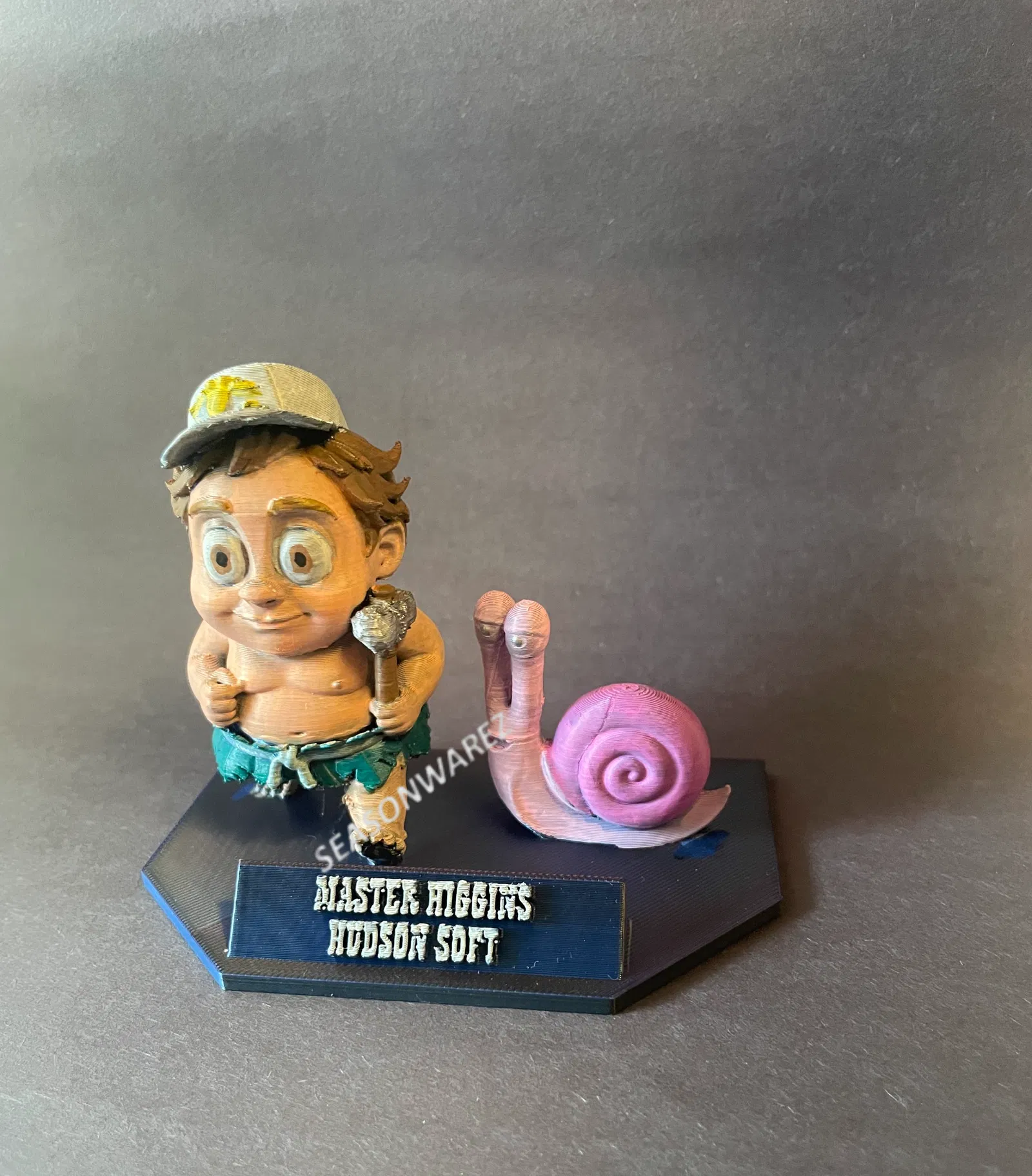 Mang không khí của kỷ nguyên 8-bit lên kệ trưng bày với mô hình Master Higgins từ Adventure Island. Thiết kế theo phong cách retro hiện đại, đi kèm rìu đá, ốc sên và bảng tên, là món đồ sưu tầm hoàn hảo cho các fan của hệ máy NES.