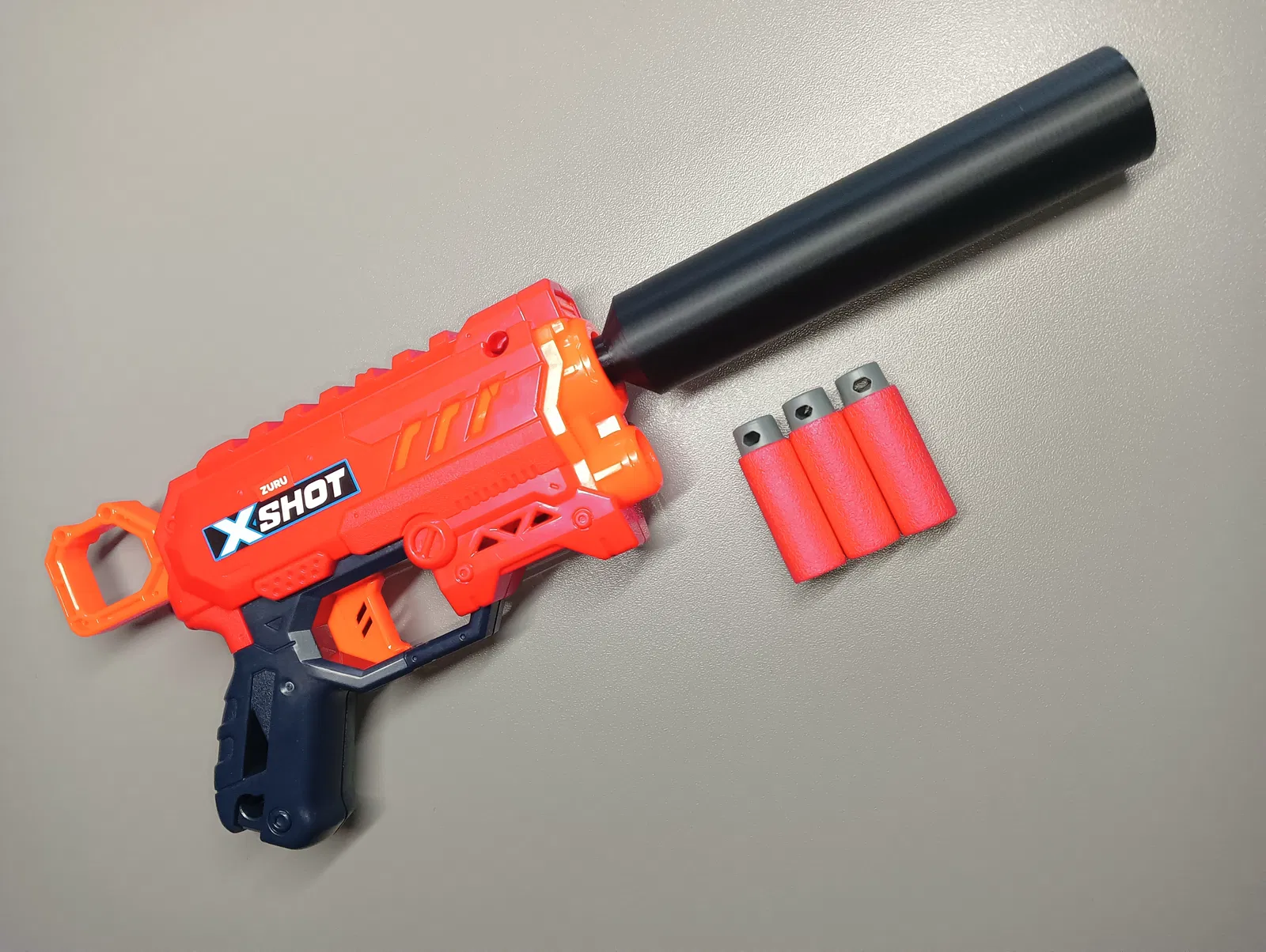 Đây là inline clip chứa 3 viên short dart phong cách ống giảm thanh dành cho các loại blaster nạp đạn phía trước. Tôi đã tối ưu hóa và tinh chỉnh nó cho dòng X-Shot Micro 2.0 mới. Tuy nhiên, các loại blaster nạp trước khác cũng có thể dùng được nếu thể tích ống pít-tông tương đương. (Tôi cũng đã thêm phiên bản cho dòng Micro 1 cũ và yếu hơn).