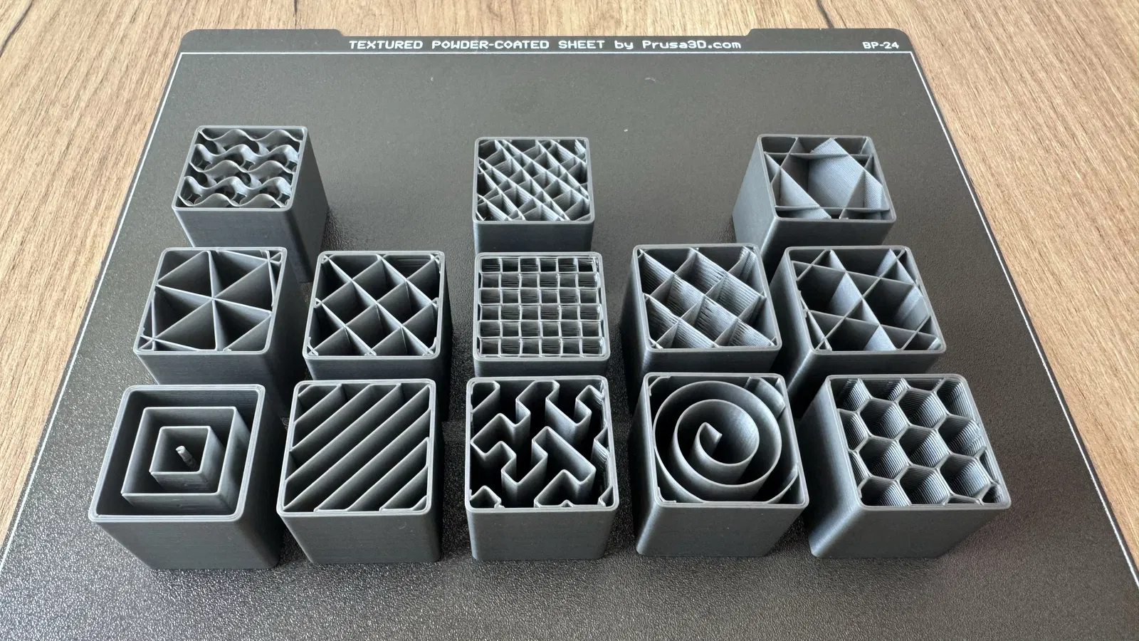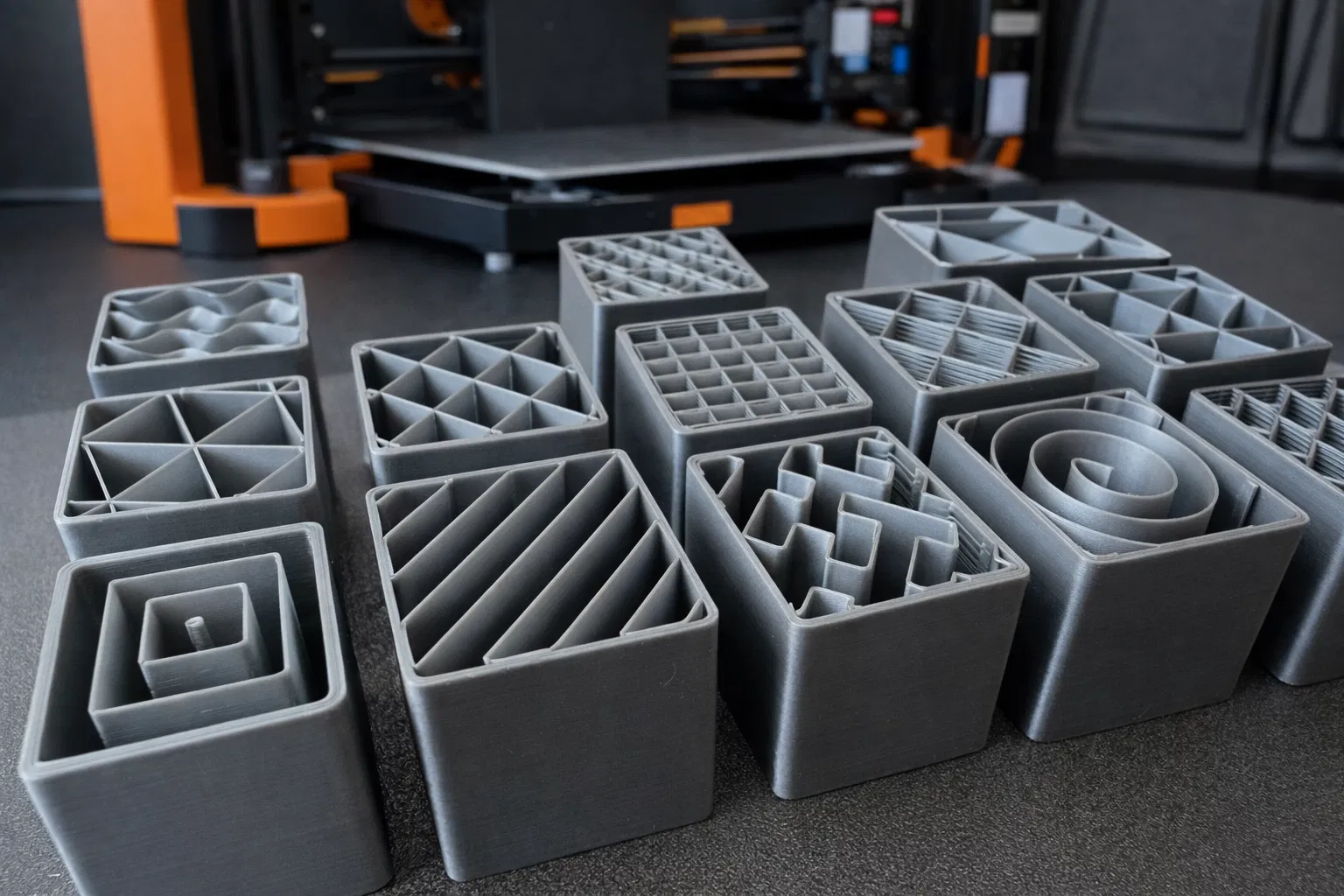 Các khối lập phương dùng để kiểm tra kiểu in phần lõi (infill pattern).