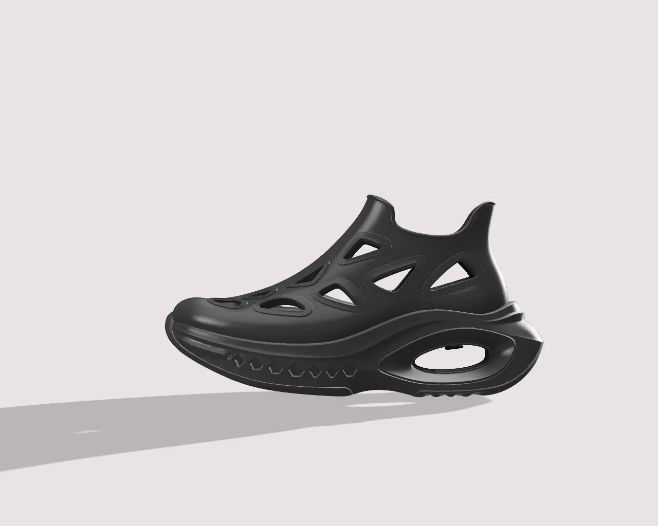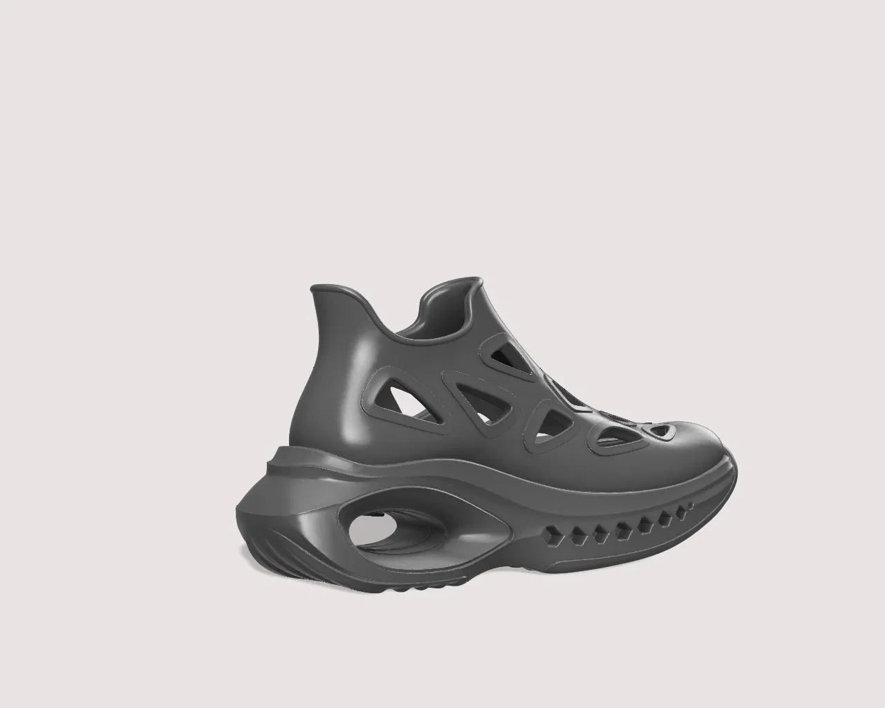 Mang tương lai đến ngay bàn in của bạn! Mẫu thiết kế giày cực kỳ viễn tưởng này sở hữu phom dáng táo bạo, các khoang đế nổi cùng những đường cắt thông gió hữu cơ - cực kỳ hoàn hảo cho những thử nghiệm thời trang hoặc dùng làm vật trang trí.