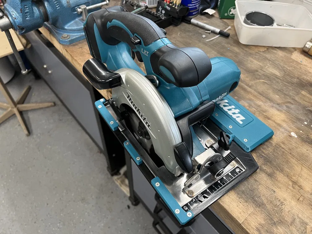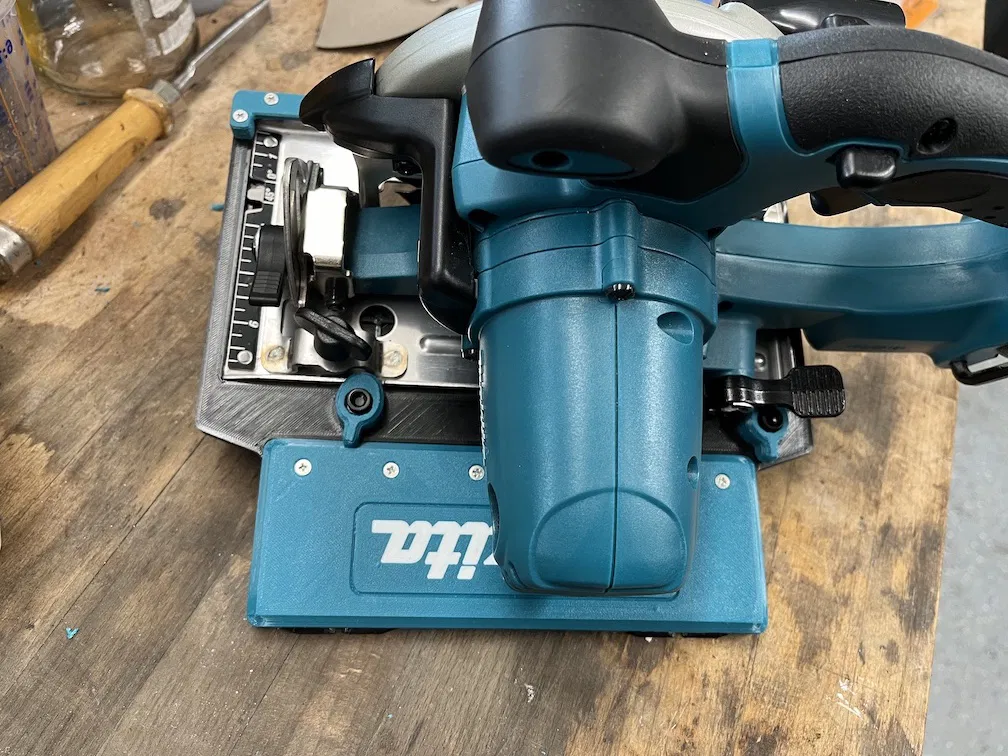 Adapter giúp sử dụng cưa đĩa 18V Makita với thanh ray dẫn hướng tiêu chuẩn. Thiết kế thông minh, dễ dàng điều chỉnh, tương thích với cả máy in 3D khổ nhỏ.
