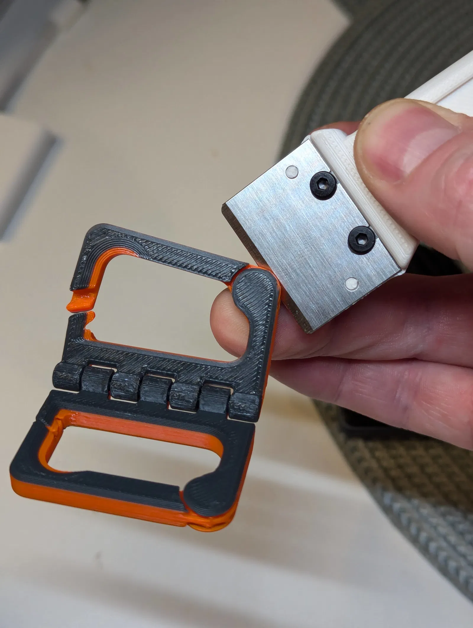Chiếc đế giữ điện thoại nhỏ gọn, có thể gấp lại làm móc khóa cực tiện lợi khi đi du lịch. Thiết kế in nguyên khối, đòi hỏi kỹ thuật in ấn cao và máy in đã được tinh chỉnh kỹ để đạt kết quả tốt nhất.